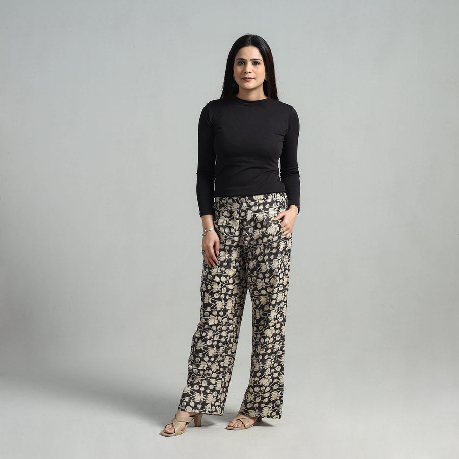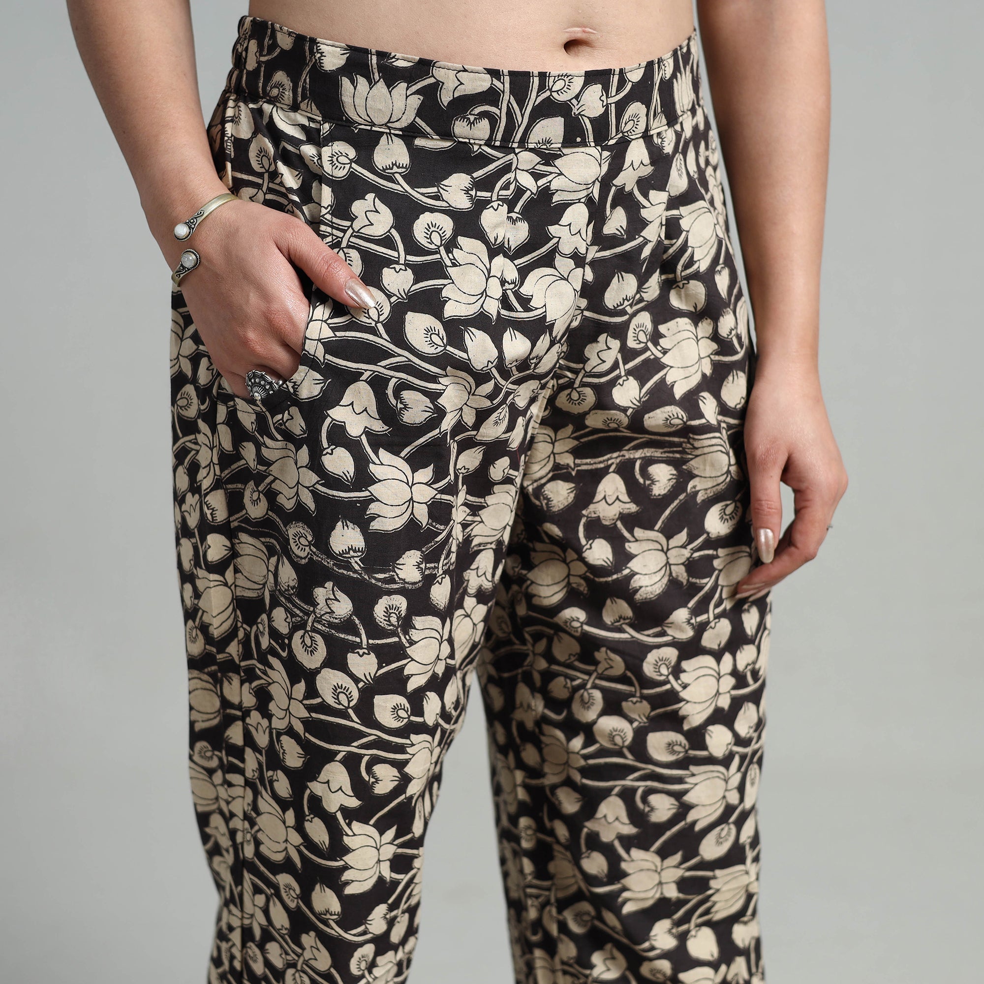 Experience the elegance of handcrafted tradition with this block printed cotton pedana kalamkari cotton palazzo. Made from natural dyed breathable cotton, the palazzo ensures unmatched comfort and ease of movement. The elasticated waist offers a perfect fit, while two functional side pockets add practicality. Ideal for casual outings or festive gatherings, this versatile piece blends tradition with modern-day functionality.