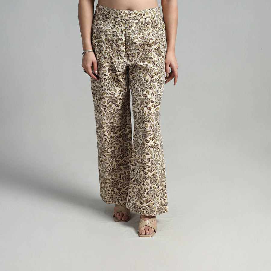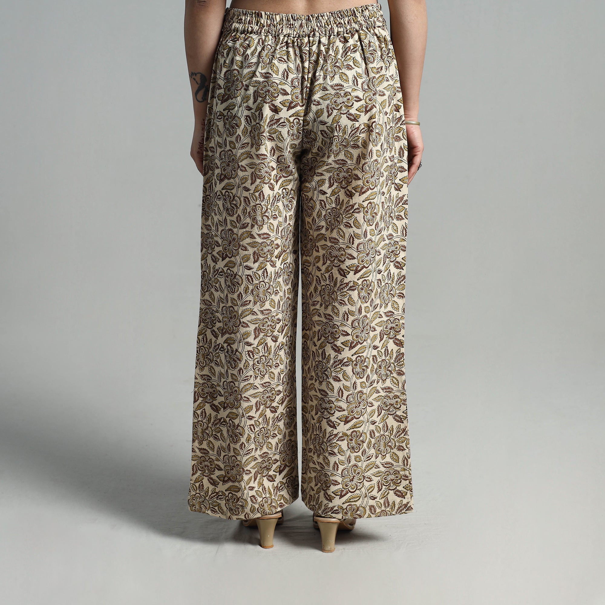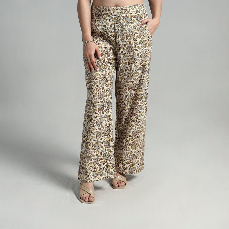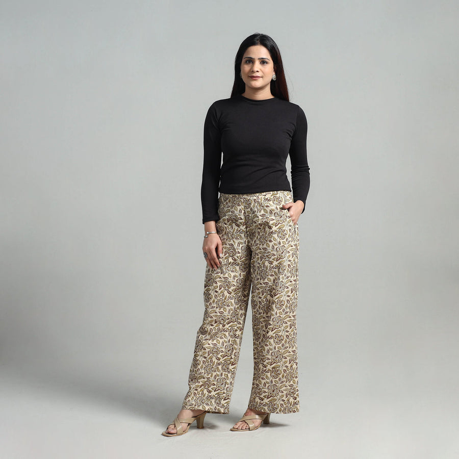 Experience the elegance of handcrafted tradition with this block printed cotton pedana kalamkari cotton palazzo. Made from natural dyed breathable cotton, the palazzo ensures unmatched comfort and ease of movement. The elasticated waist offers a perfect fit, while two functional side pockets add practicality. Ideal for casual outings or festive gatherings, this versatile piece blends tradition with modern-day functionality.