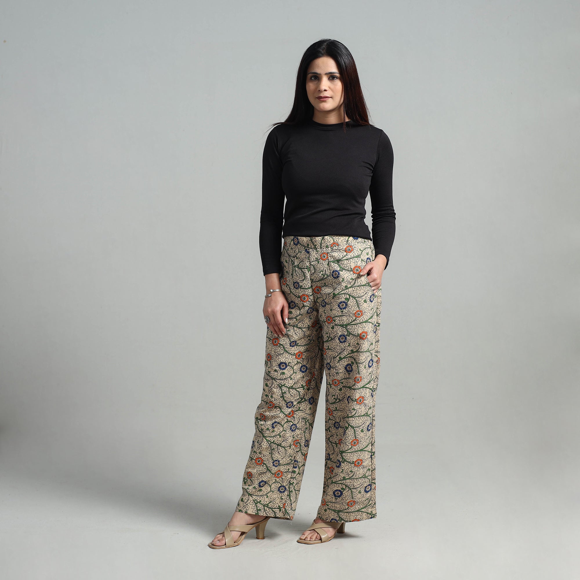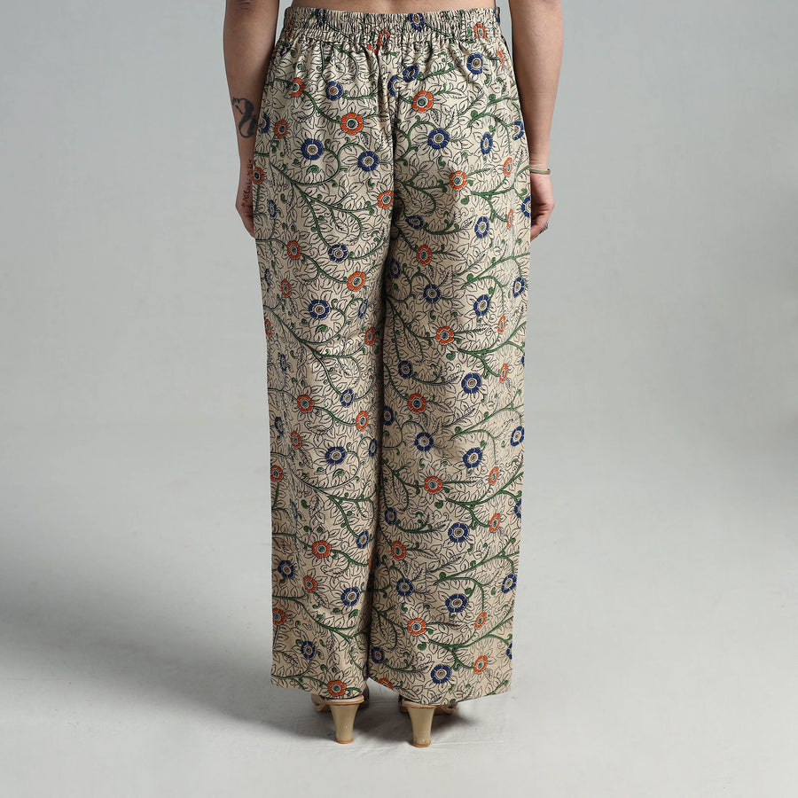 Experience the elegance of handcrafted tradition with this block printed cotton pedana kalamkari cotton palazzo. Made from natural dyed breathable cotton, the palazzo ensures unmatched comfort and ease of movement. The elasticated waist offers a perfect fit, while two functional side pockets add practicality. Ideal for casual outings or festive gatherings, this versatile piece blends tradition with modern-day functionality.