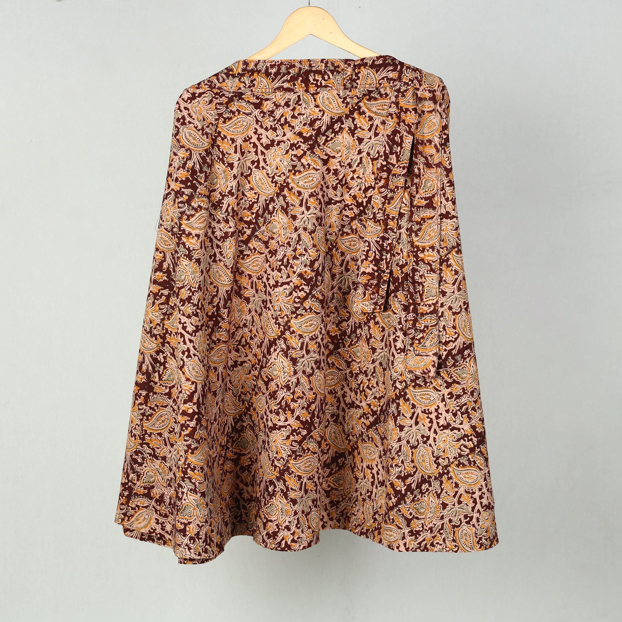 Experience the elegance of tradition with our block printed cotton wrap around kalamkari skirt. Each piece showcases the intricate of Kalamkari, a craft rooted in India's heritage. The natural dyed breathable cotton fabric ensures comfort, while the wrap-around design offers a flattering, customizable fit. Perfect for casual outings or festive gatherings, this skirt blends artisanal beauty with everyday functionality.