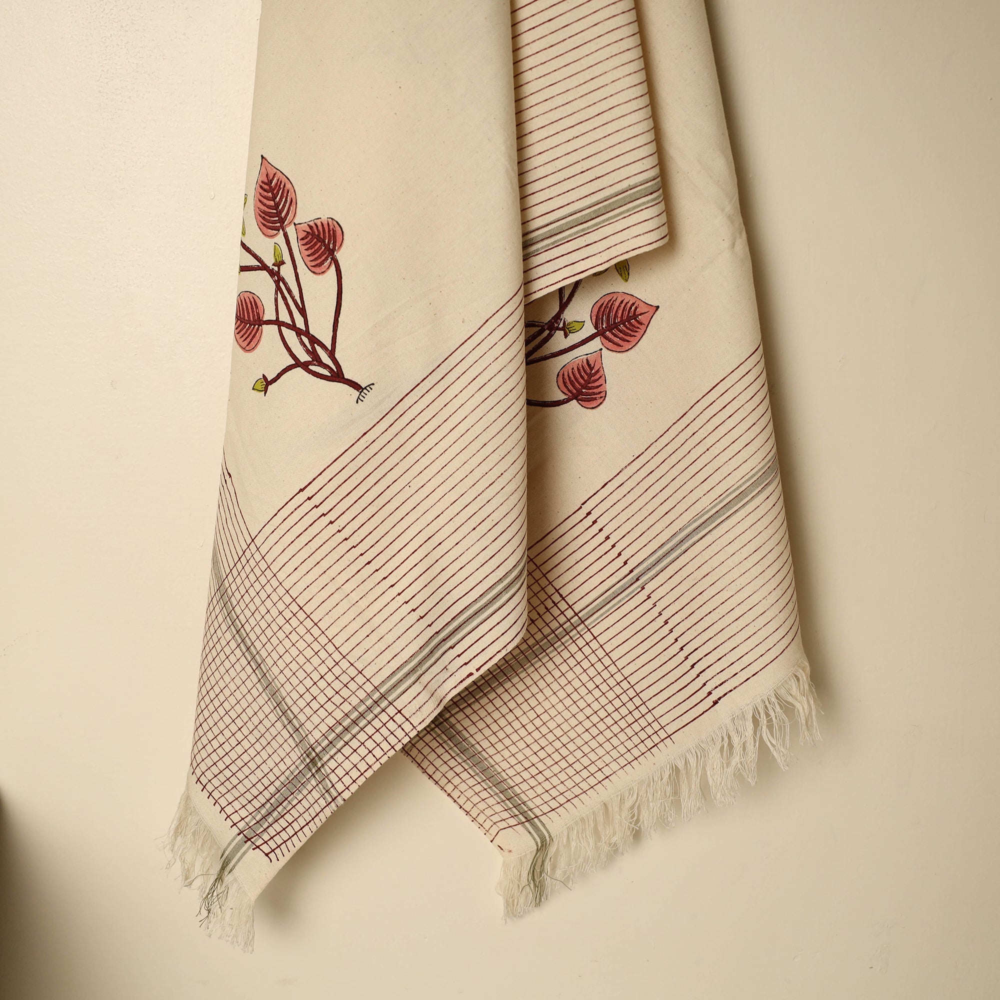 Hand block printed handloom cotton sanganeri towel, crafted using traditional hand block-printing techniques by Purushottam Chhipa. Woven in Jhiri, Rajasthan, with natural VAT dyes that ensure vibrant, bleed-free designs. Perfect for those who value sustainable and handmade craftsmanship. Discover the beauty of authentic prints and support local artisans through each purchase.