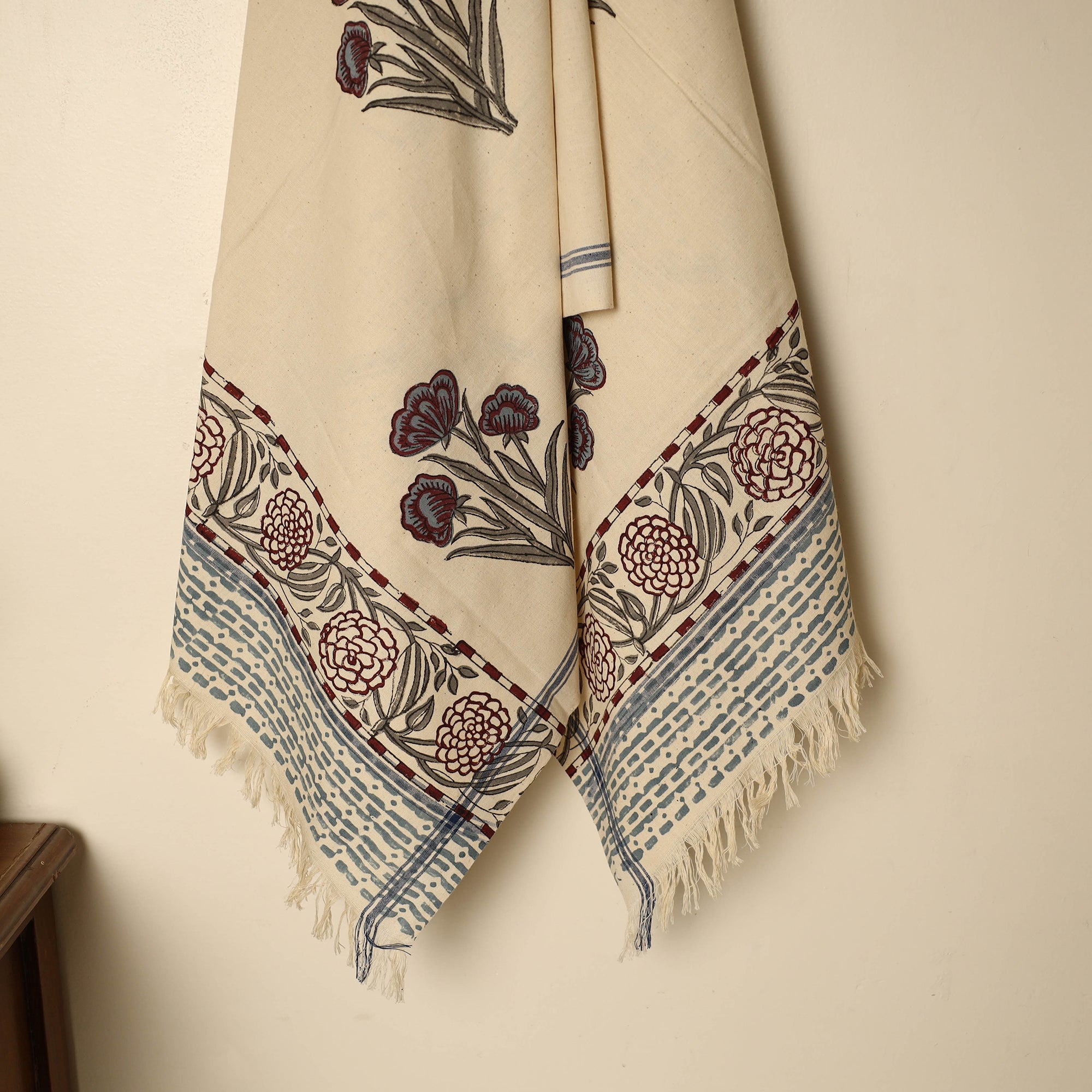 Hand block printed handloom cotton sanganeri towel, crafted using traditional hand block-printing techniques by Purushottam Chhipa. Woven in Jhiri, Rajasthan, with natural VAT dyes that ensure vibrant, bleed-free designs. Perfect for those who value sustainable and handmade craftsmanship. Discover the beauty of authentic prints and support local artisans through each purchase.