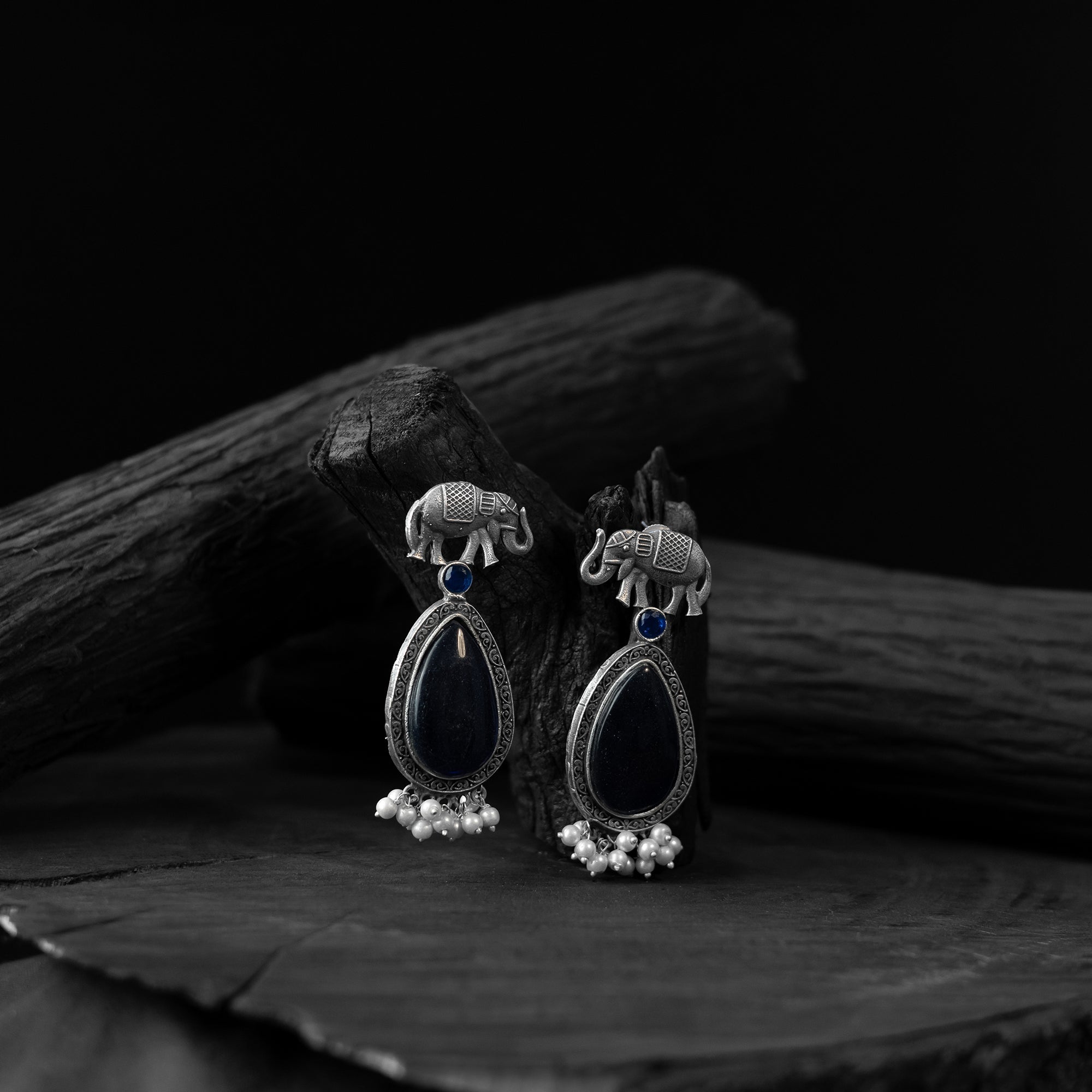Blue oxidised handcrafted earrings made with a blend of metal, stones, pearls, beads, and fine detailing. Perfect for festive occasions, weddings, casual outings, office wear, or vacations. Their elegant black and silver tones pair beautifully with everything from casual jeans and flowy dresses to chic office ensembles. A meaningful gift for mother, sister, wife, or girlfriend adding a beautiful touch of tradition to every moment.
