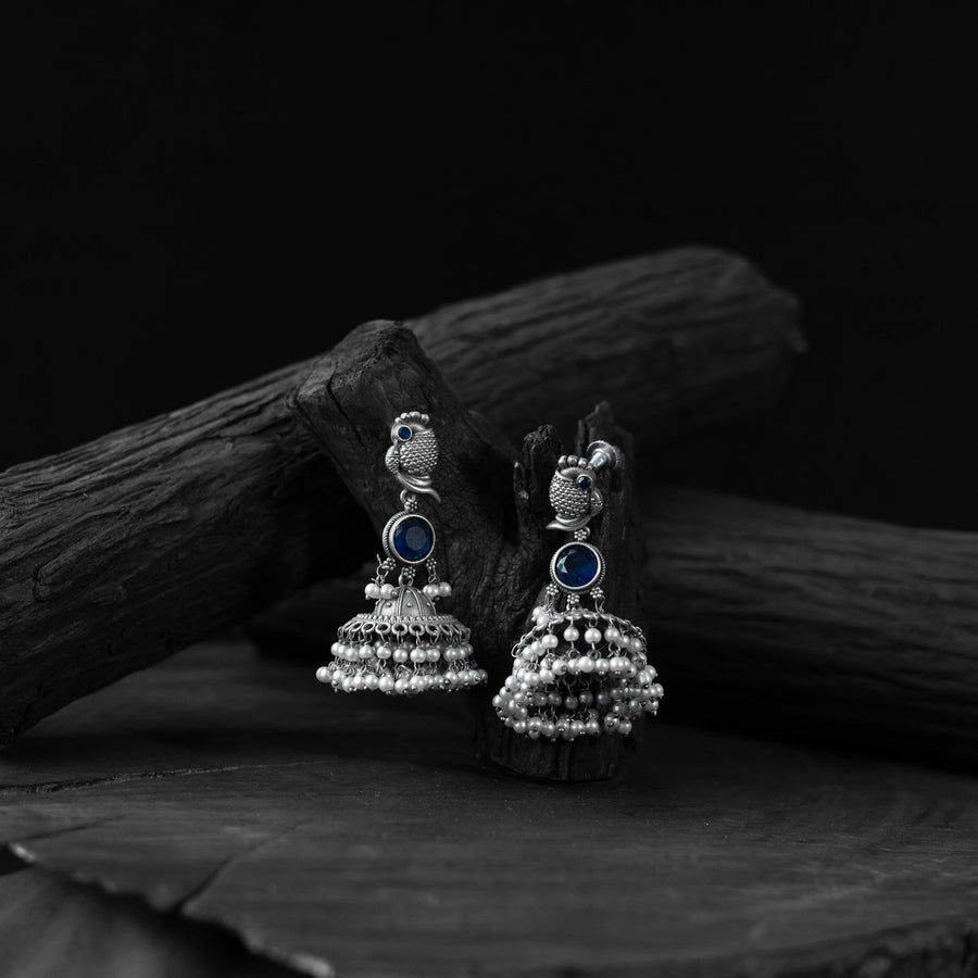 Oxidised handcrafted blue earrings made with a blend of metal, stones, pearls, beads, and fine detailing. Perfect for festive occasions, weddings, casual outings, office wear, or vacations. Their elegant black and silver tones pair beautifully with everything from casual jeans and flowy dresses to chic office ensembles. A meaningful gift for mother, sister, wife, or girlfriend adding a beautiful touch of tradition to every moment.