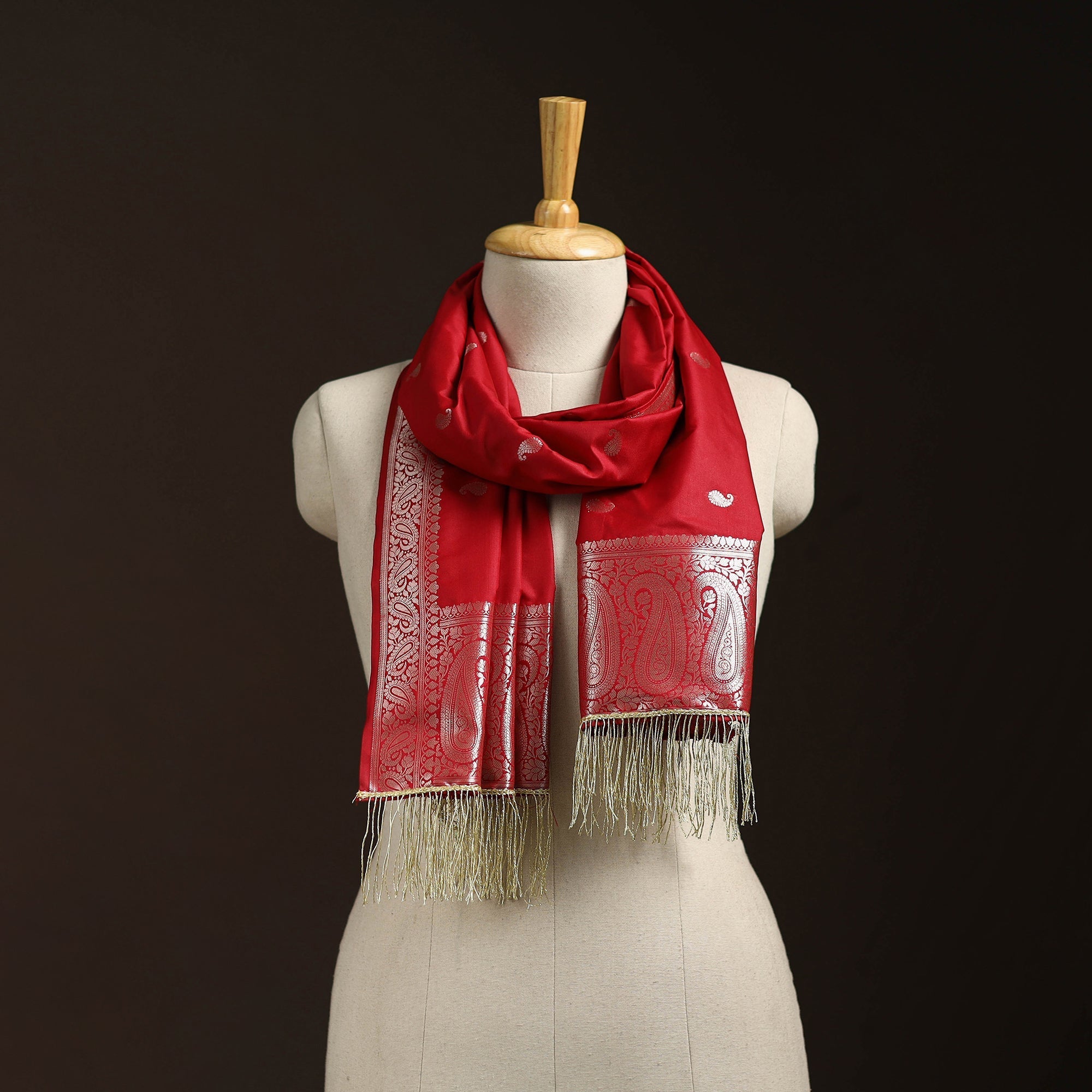 Red - Brocade Handloom Semi Silk Banarasi Stole 22