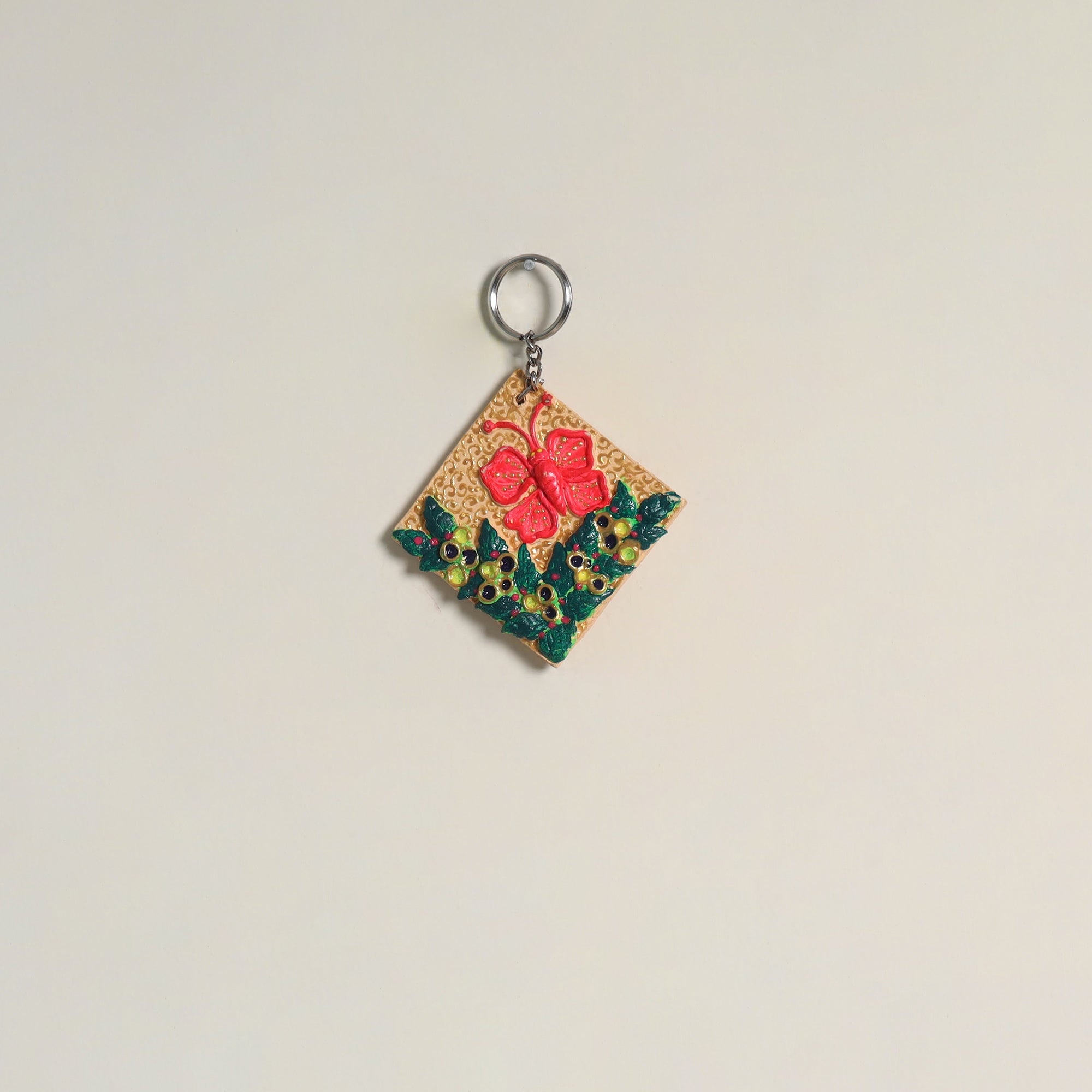 This hand-painted clay art keychain is crafted on a durable MDF wood base with intricately detailed clay work. Accented with vibrant hand-painted designs, it embodies creativity and cultural elegance in a compact form. Lightweight yet sturdy, it keeps your keys secure while adding artistic flair. A thoughtful gift or everyday accessory that lets you carry art wherever you go.