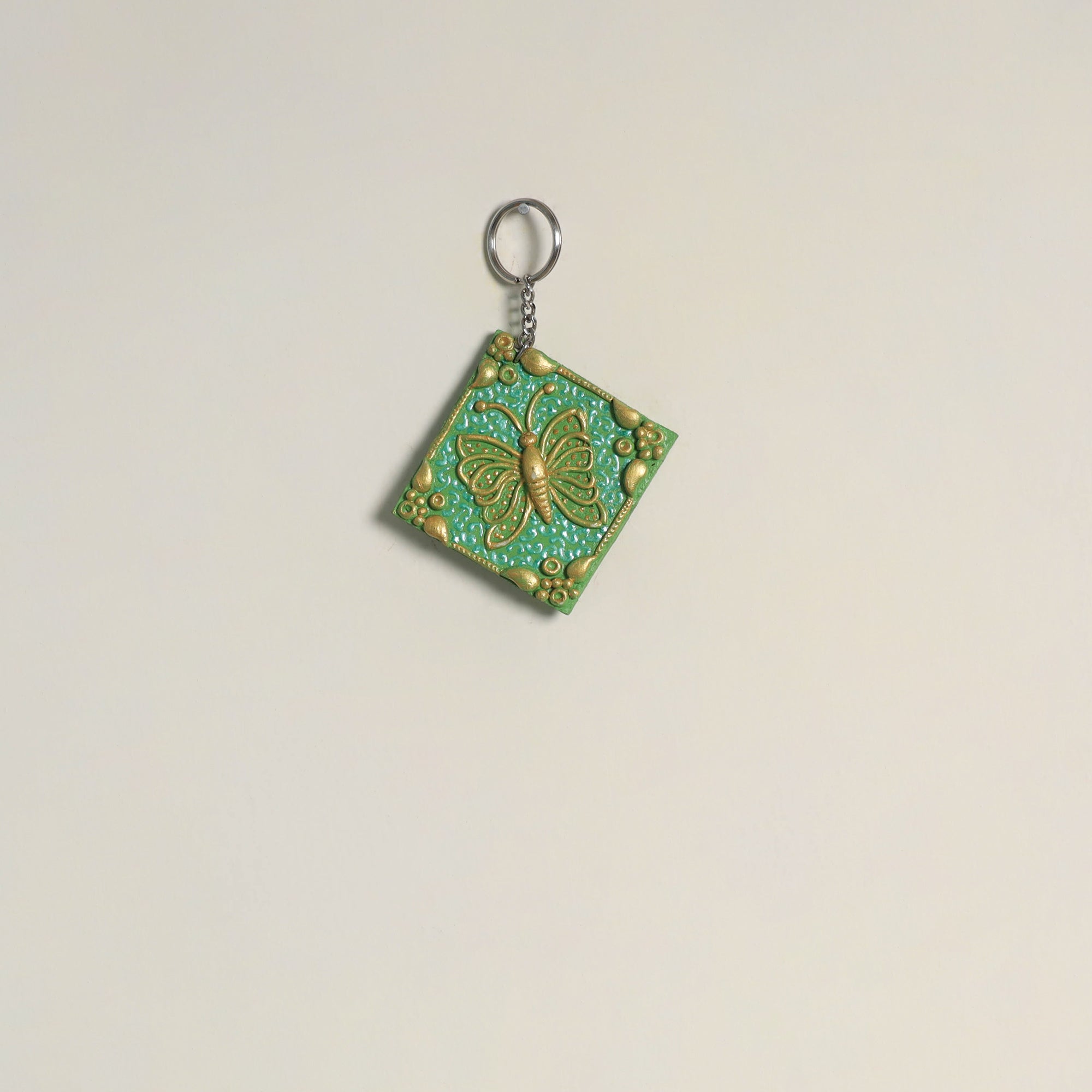 This hand-painted clay art keychain is crafted on a durable MDF wood base with intricately detailed clay work. Accented with vibrant hand-painted designs, it embodies creativity and cultural elegance in a compact form. Lightweight yet sturdy, it keeps your keys secure while adding artistic flair. A thoughtful gift or everyday accessory that lets you carry art wherever you go.