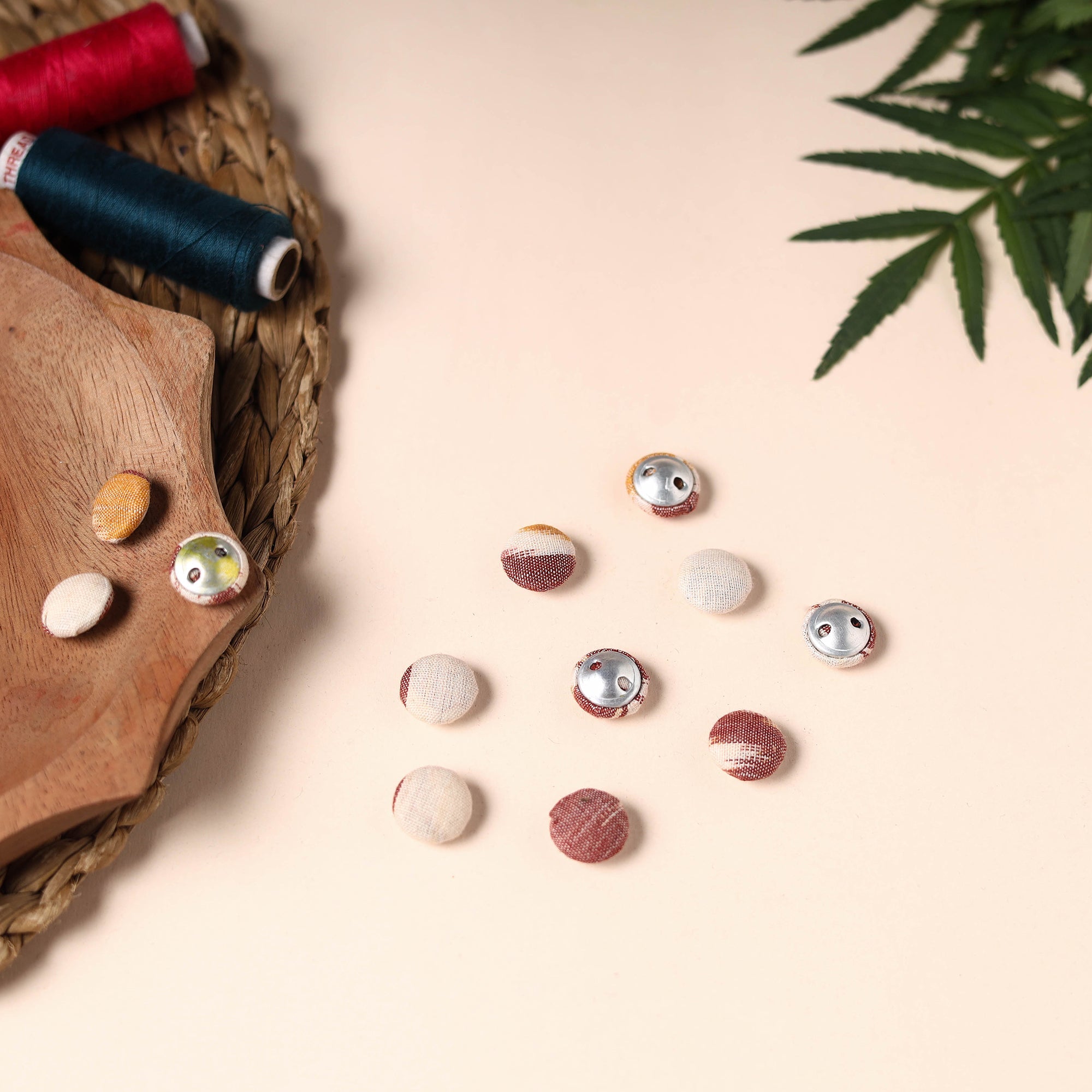 The fabric is sewn on silk thread buttons. The material quality of these buttons is top-notch, sturdy, washable and durable. The silk thread used for the buttons is 100% pure and no synthetic fabrics are used in the blend.