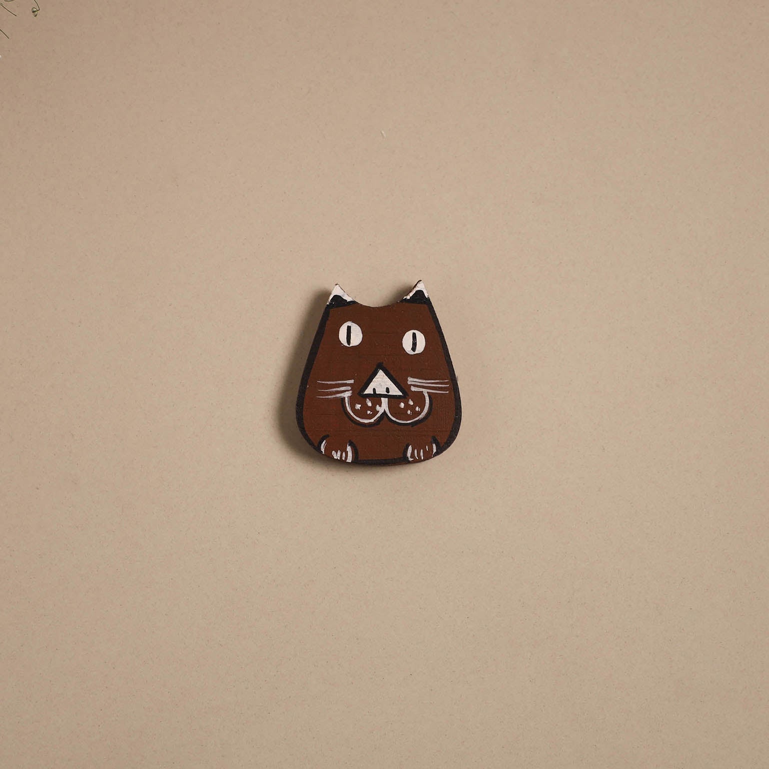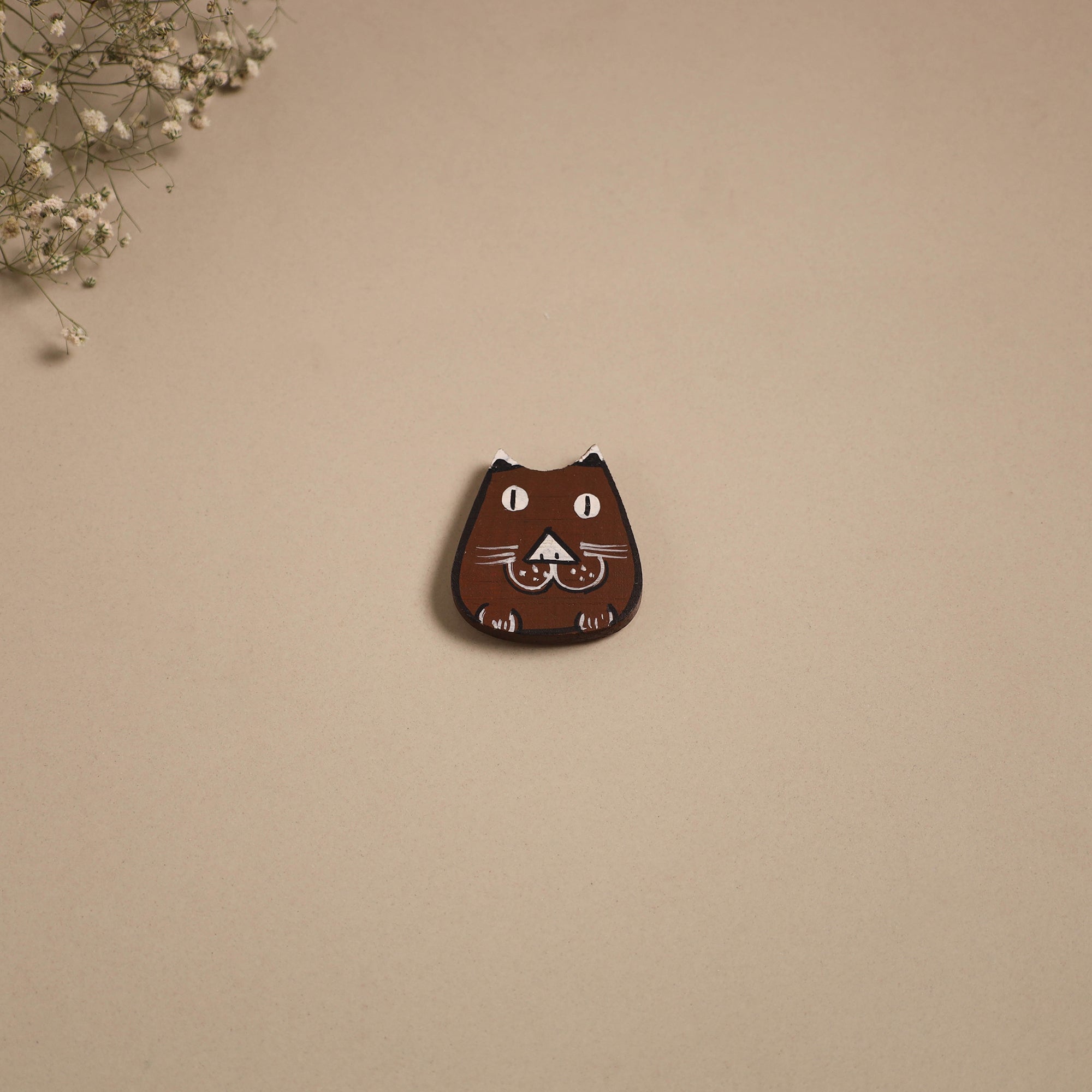 Cat - Kerala Mural Handpainted Bamboo Fridge Magnet 02