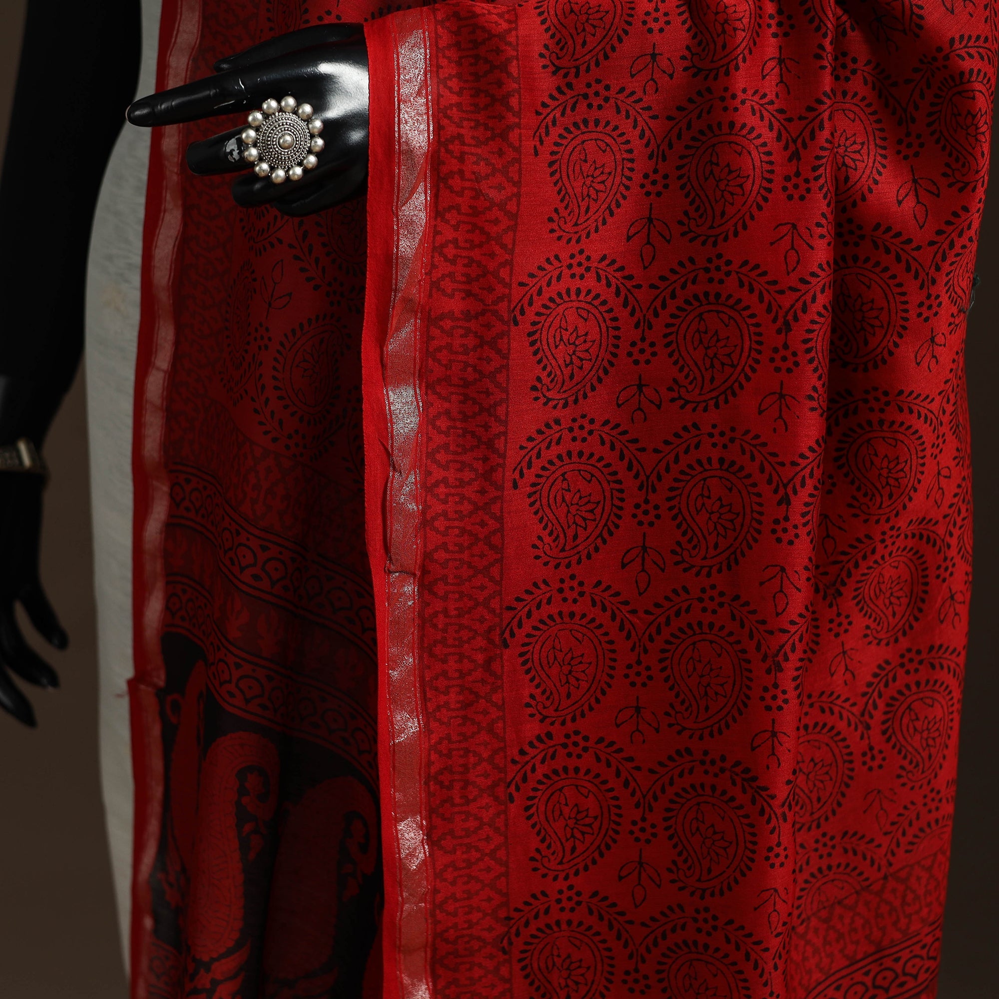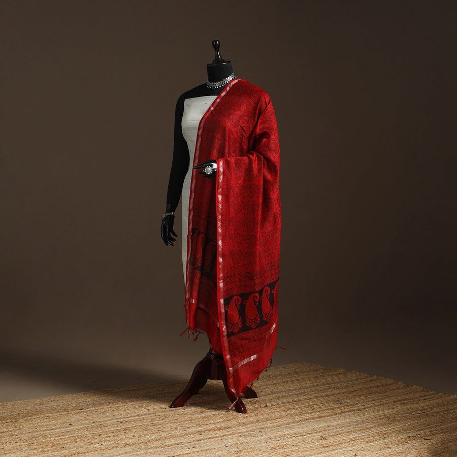 • Red - Chanderi Silk Bagh Block Print Natural Dyed Dupatta with Zari Border 02