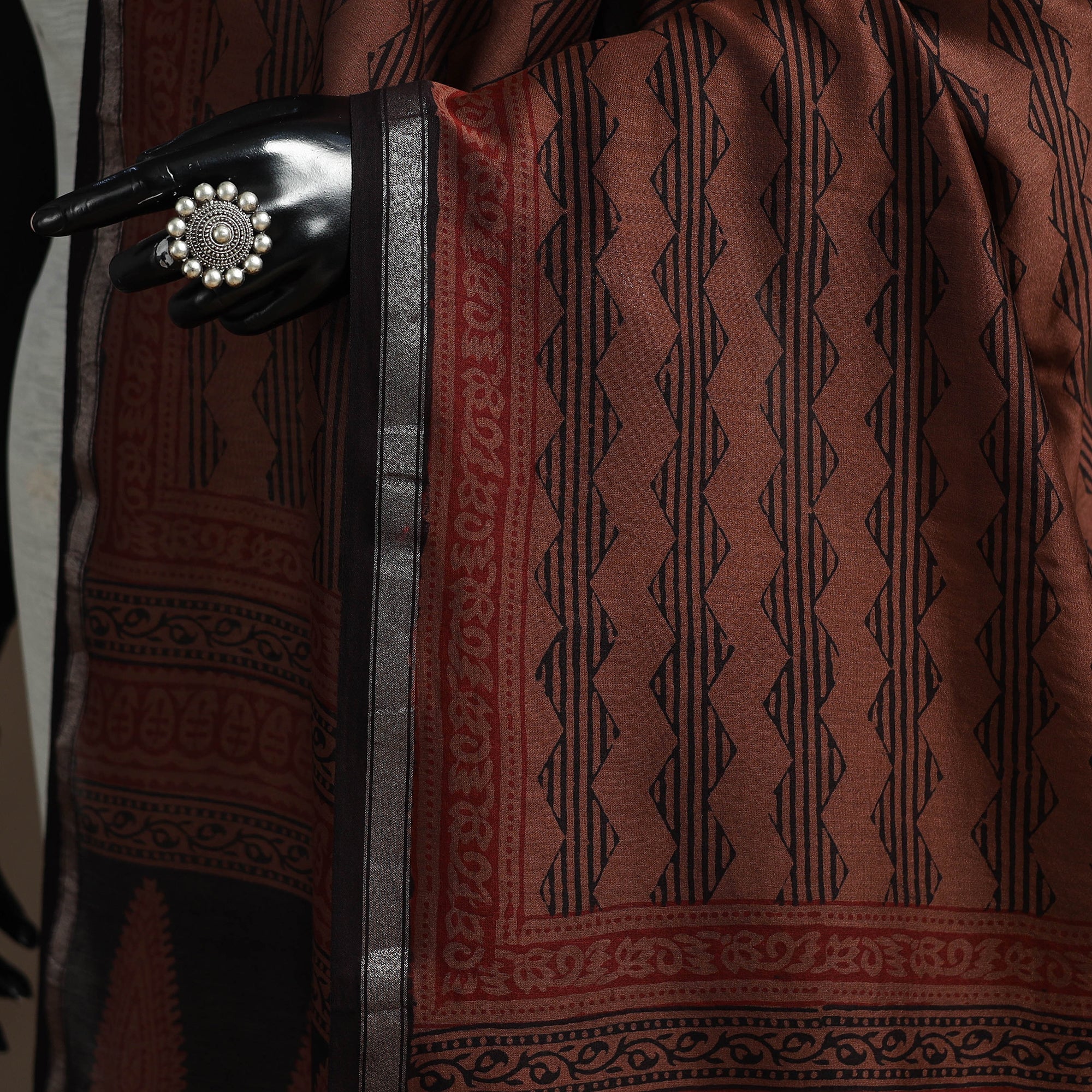 Brown - Chanderi Silk Bagh Block Print Natural Dyed Dupatta with Zari Border 34