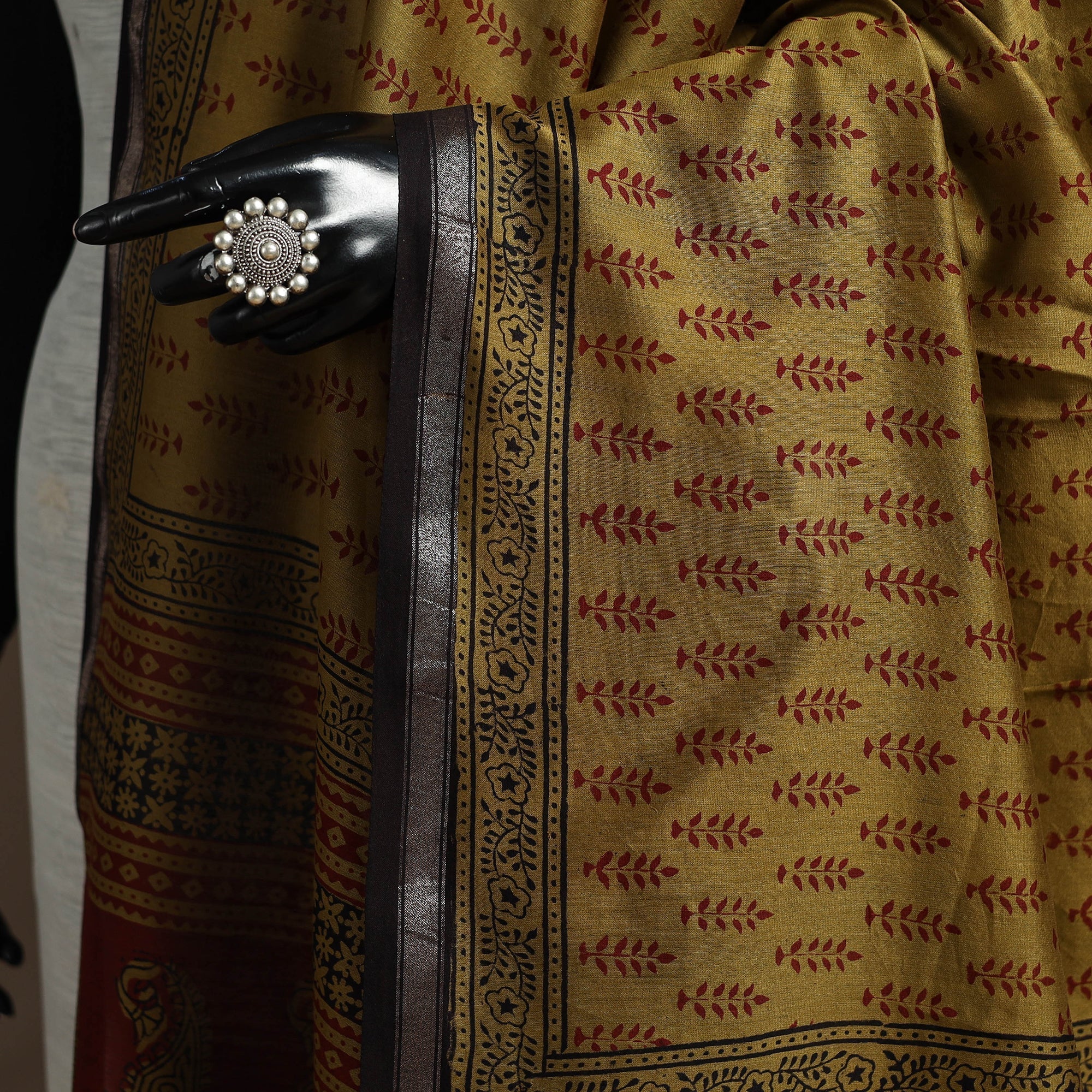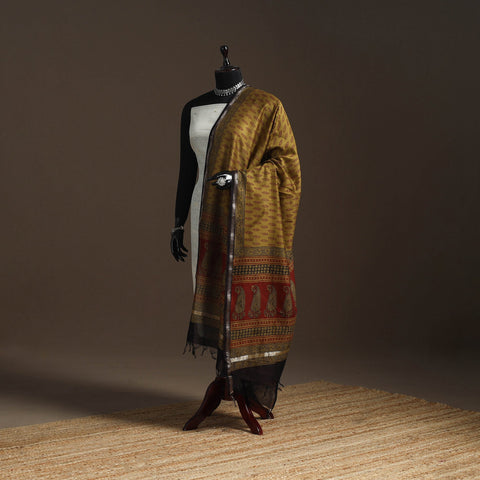 | Material | This yellow bagh dupatta is hand block printed in Madhya Pradesh using natural dyes and traditional techniques. Made from a Chanderi silk and mercerised cotton blend, it features a zari border that adds a classic touch. Whether for a festive gathering or a casual outing, this piece brings effortless grace to your look. A Note on Handmade Beauty : |
