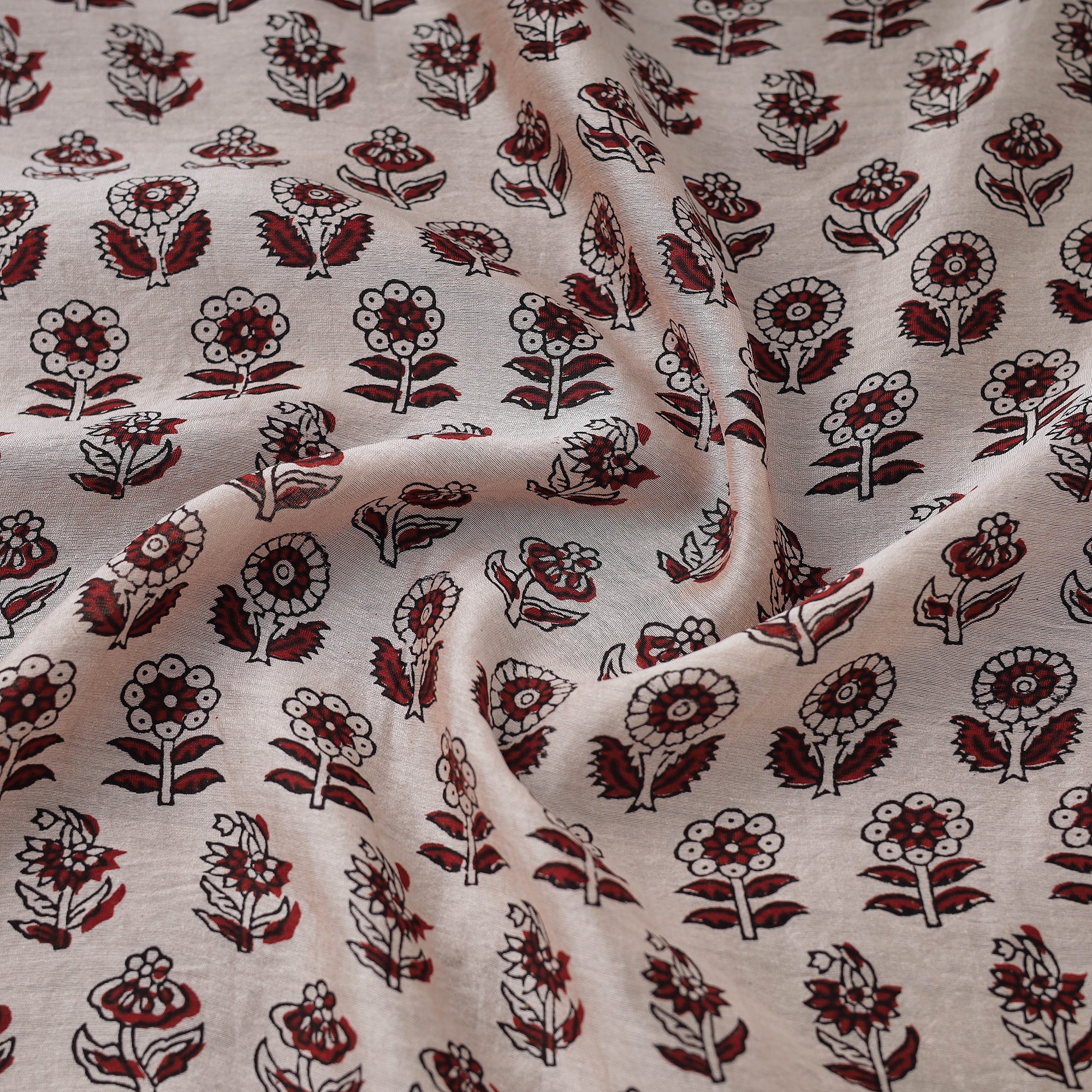 Beige - Chanderi Silk Bagh Print Fabric 02