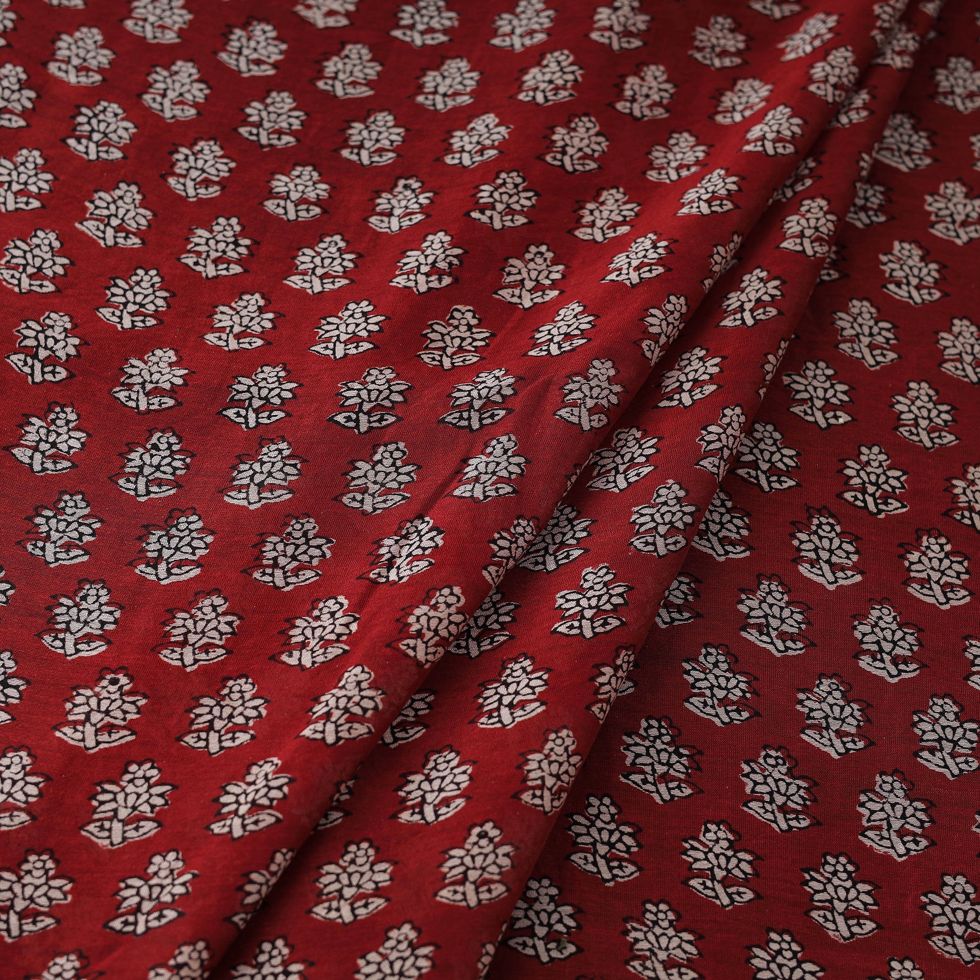 Red - Natural Dyed Cotton Hand Block Bagh Print Fabric 14