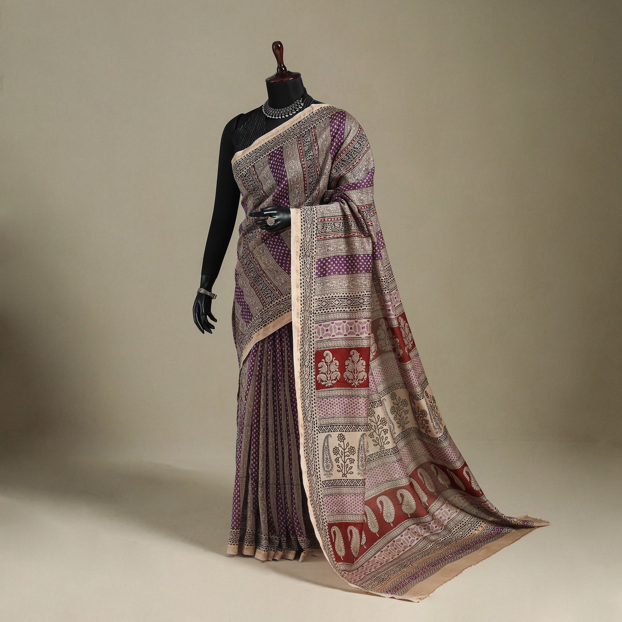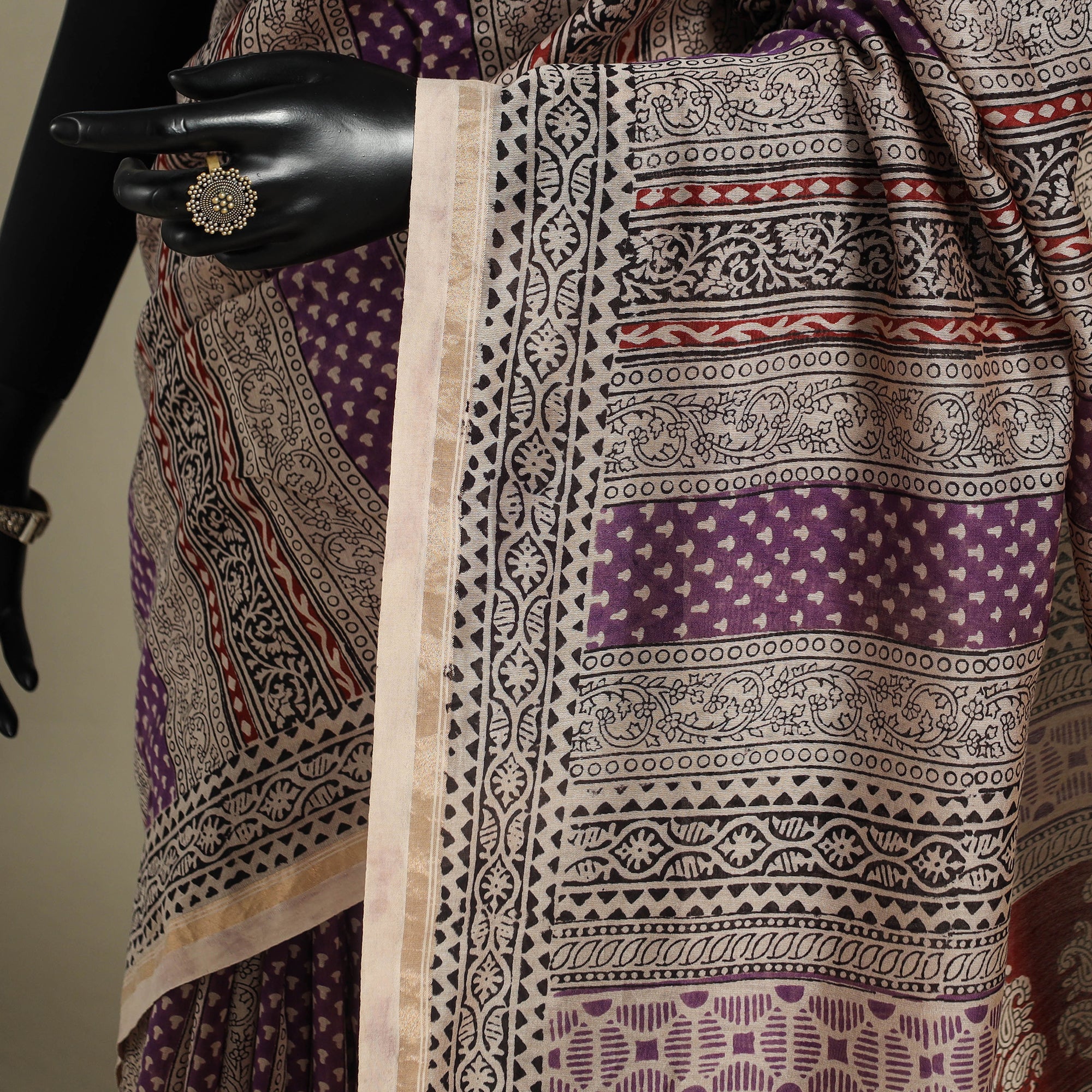 This purple bagh chanderi silk cotton saree with zari border comes from Madhya Pradesh. It is hand block-printed with detailed patterns and dyed in rich azo-free colours. Light and easy to wear, it carries the charm of traditional Indian weaving with a modern touch. Suitable for festivals, daily wear, or gifting, this saree adds grace and cultural value to any wardrobe, making it a meaningful and stylish choice.