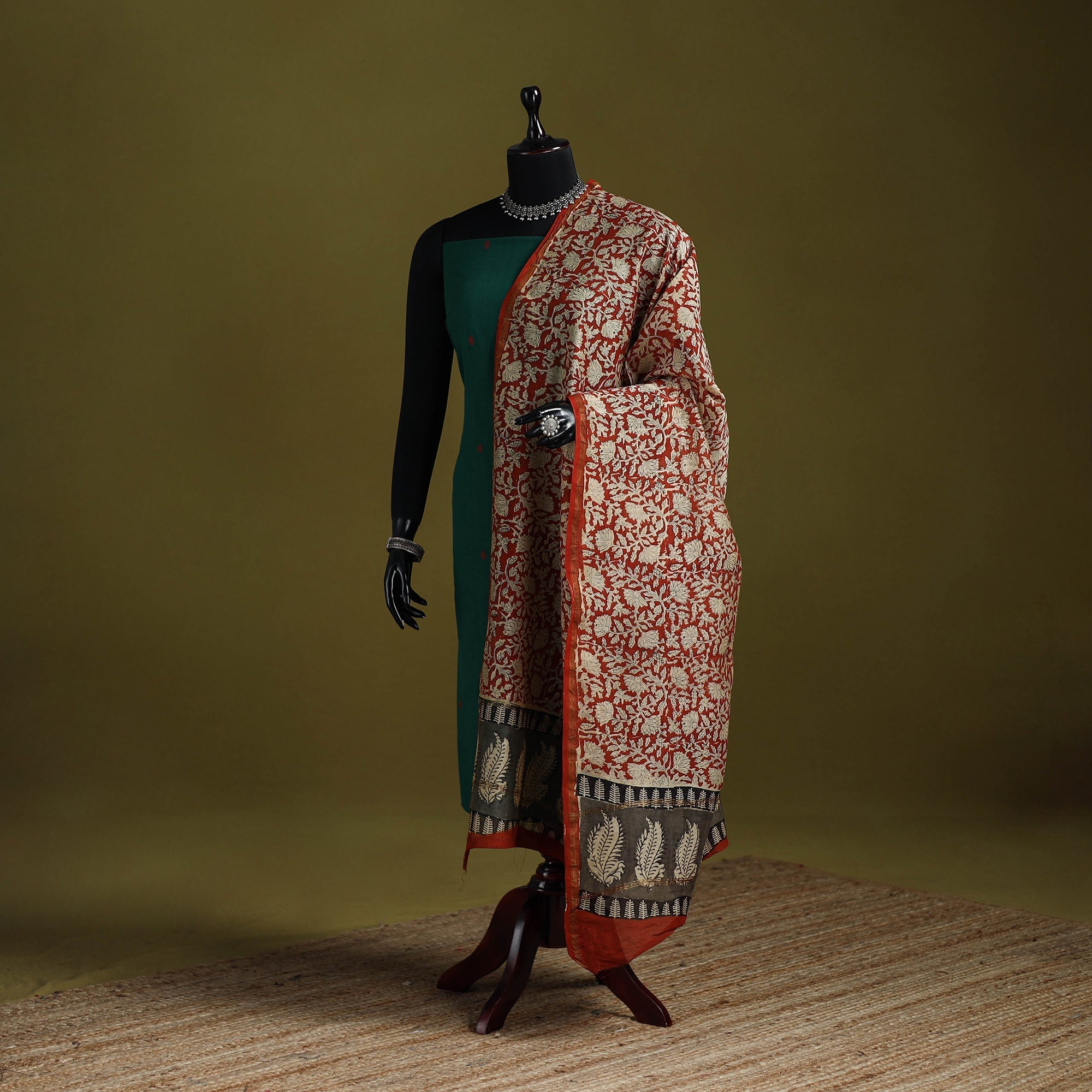 | Material | Orange bagru hand block print dupatta with zari border comes from the village of Bagru in Rajasthan, where artisans have practiced the mud-resist printing technique for over 400–450 years. Printed on chanderi silk cotton using hand carved wooden blocks with natural dyes. Featuring intricate patterns and a lightweight texture, it seamlessly blends tradition with elegance. Perfect for casual outings, special events and everyday wear. |