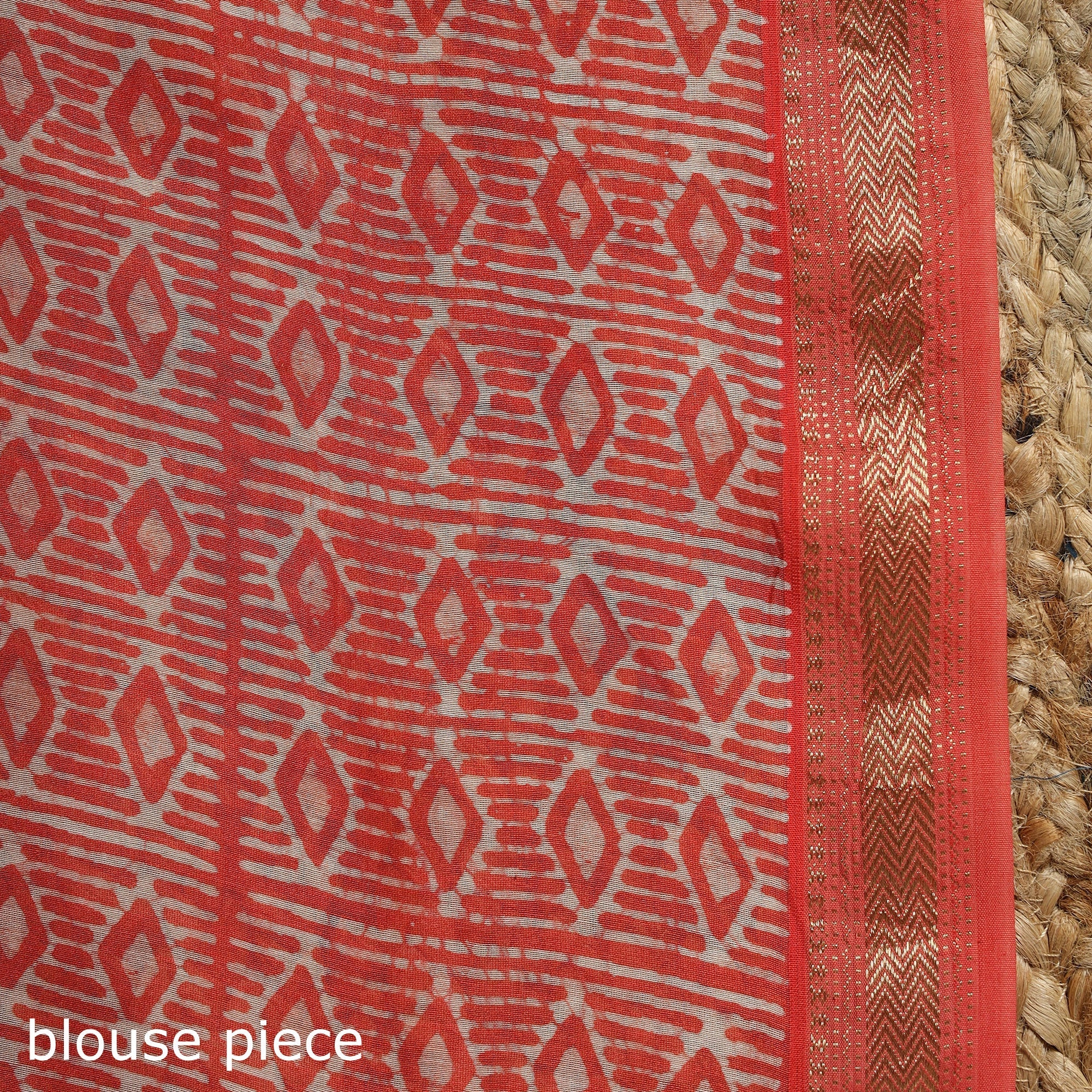 Orange - Cotton Hand Block Batik Print 3pc Unstitched Dress Material 04