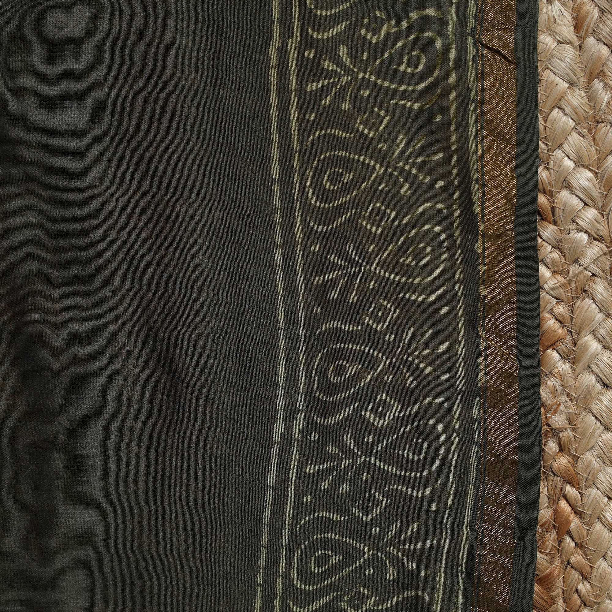 | Material | Hand block batik print saree. Made from chanderi silk cotton, this saree is created using the traditional wax-resist dyeing technique, a craft believed to be over 2,000 years old. The motifs beautifully reflect regional artistry passed down through generations. The breathable saree makes it suitable for office wear, cultural events, daytime functions, casual outings and gatherings. |