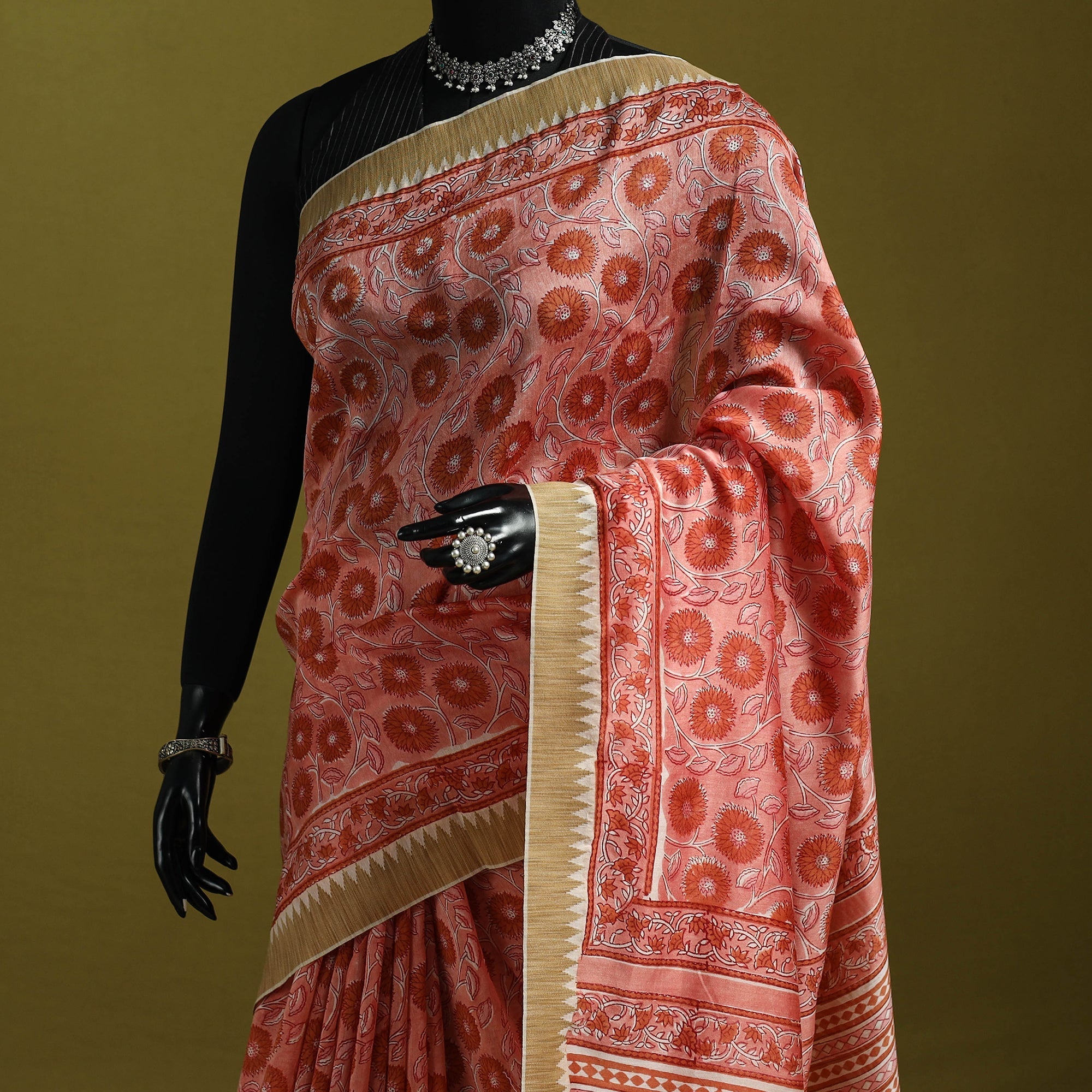 Pink - Chanderi Silk Hand Block Print Sanganeri Saree with Ghicha Border 27