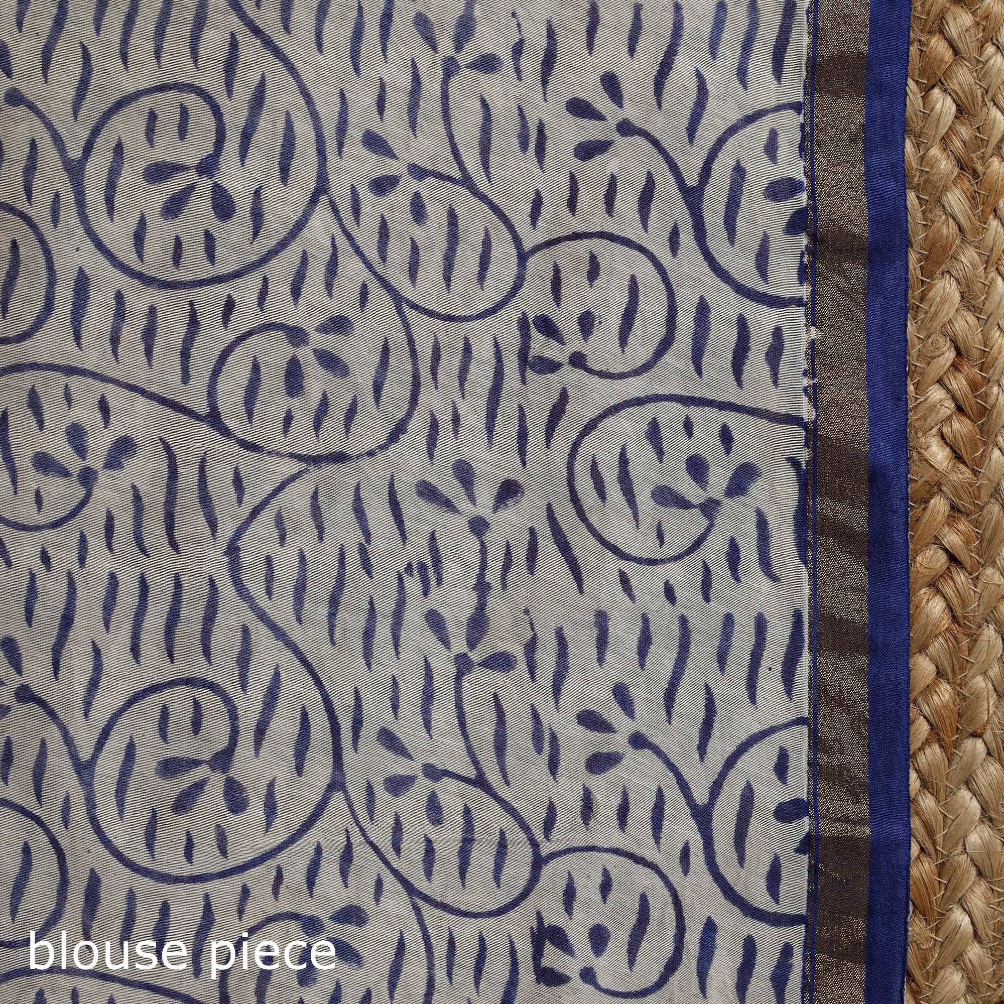 Blue hand block-printed sanganeri chanderi silk cotton saree with a zari border, adorned with intricate patterns and rich colours dyed using vat dyes. Blending elegance with cultural heritage, it is perfect for festive occasions, everyday wear or as a thoughtful gift. This saree adds timeless grace and an artisanal touch to any wardrobe.