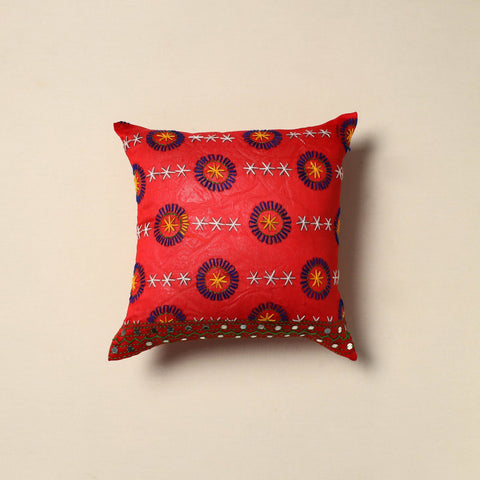 | Material | Red pure chanderi silk cushion cover features traditional hand embroidery in the Ranihati style, known for its detailed and dense threadwork. It blends artistry with comfort, making it perfect for your sofa, bed or lounge area. |