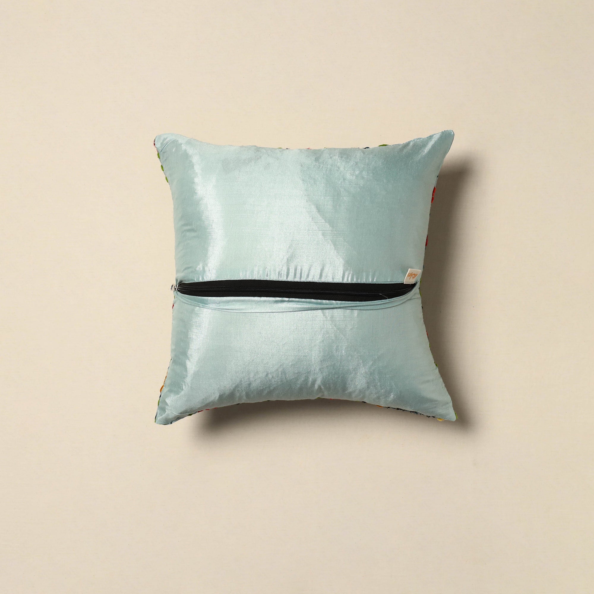 | Material | Green pure chanderi silk cushion cover features traditional hand embroidery in the Ranihati style, known for its detailed and dense threadwork. It blends artistry with comfort, making it perfect for your sofa, bed or lounge area. |