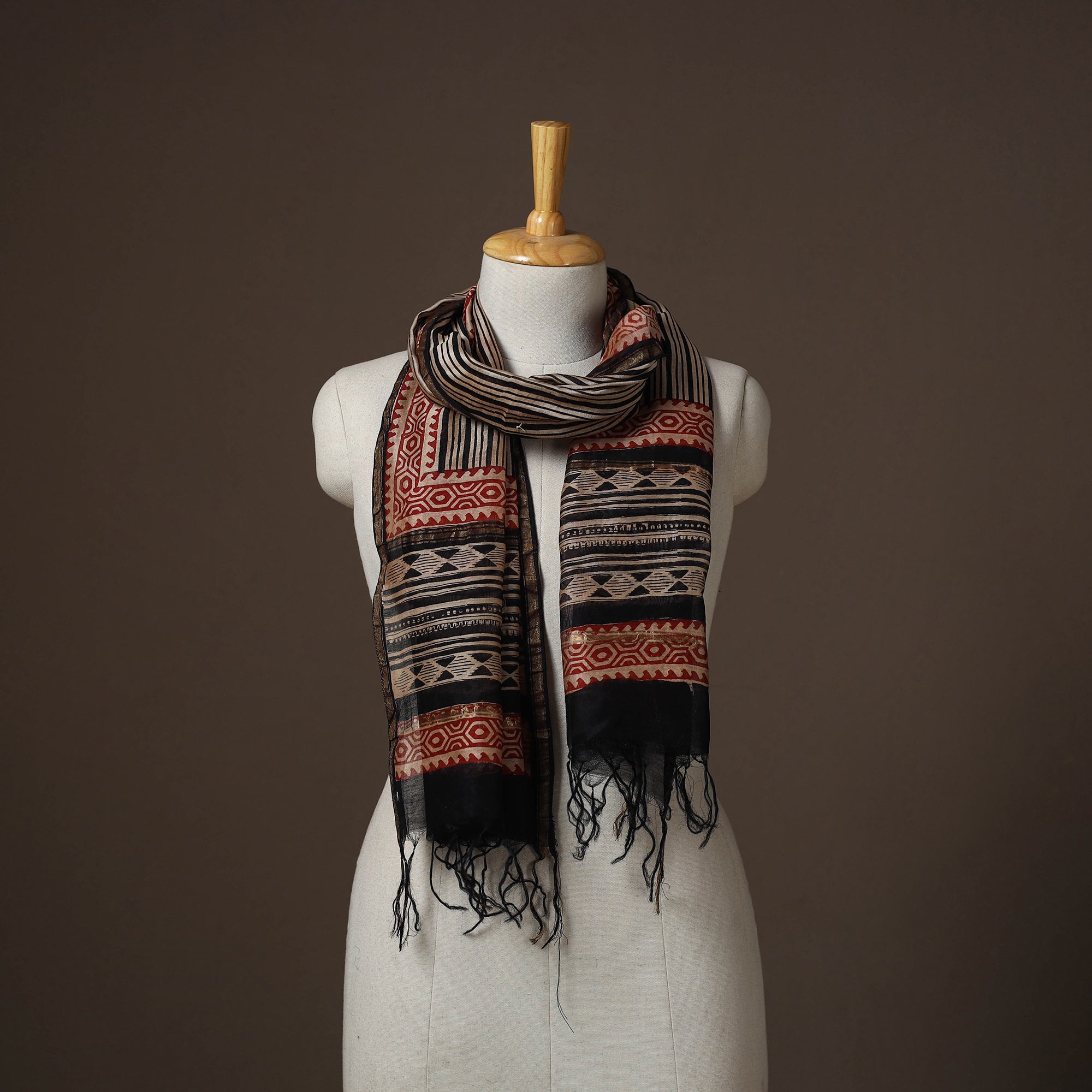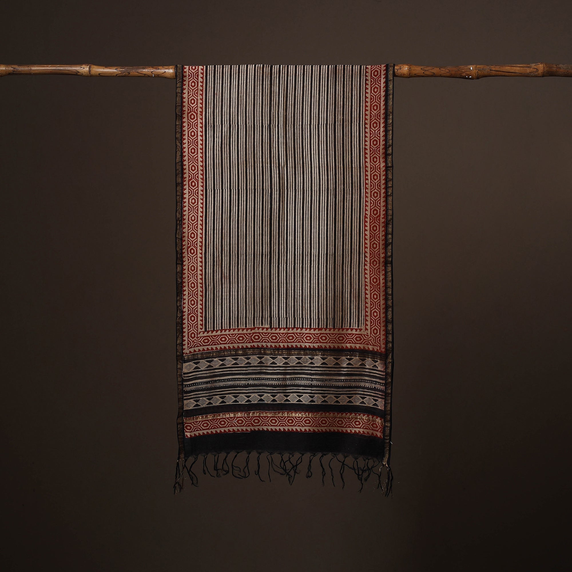 Black - Chanderi Silk Handloom Natural Dyed Block Print Bagru Stole 02