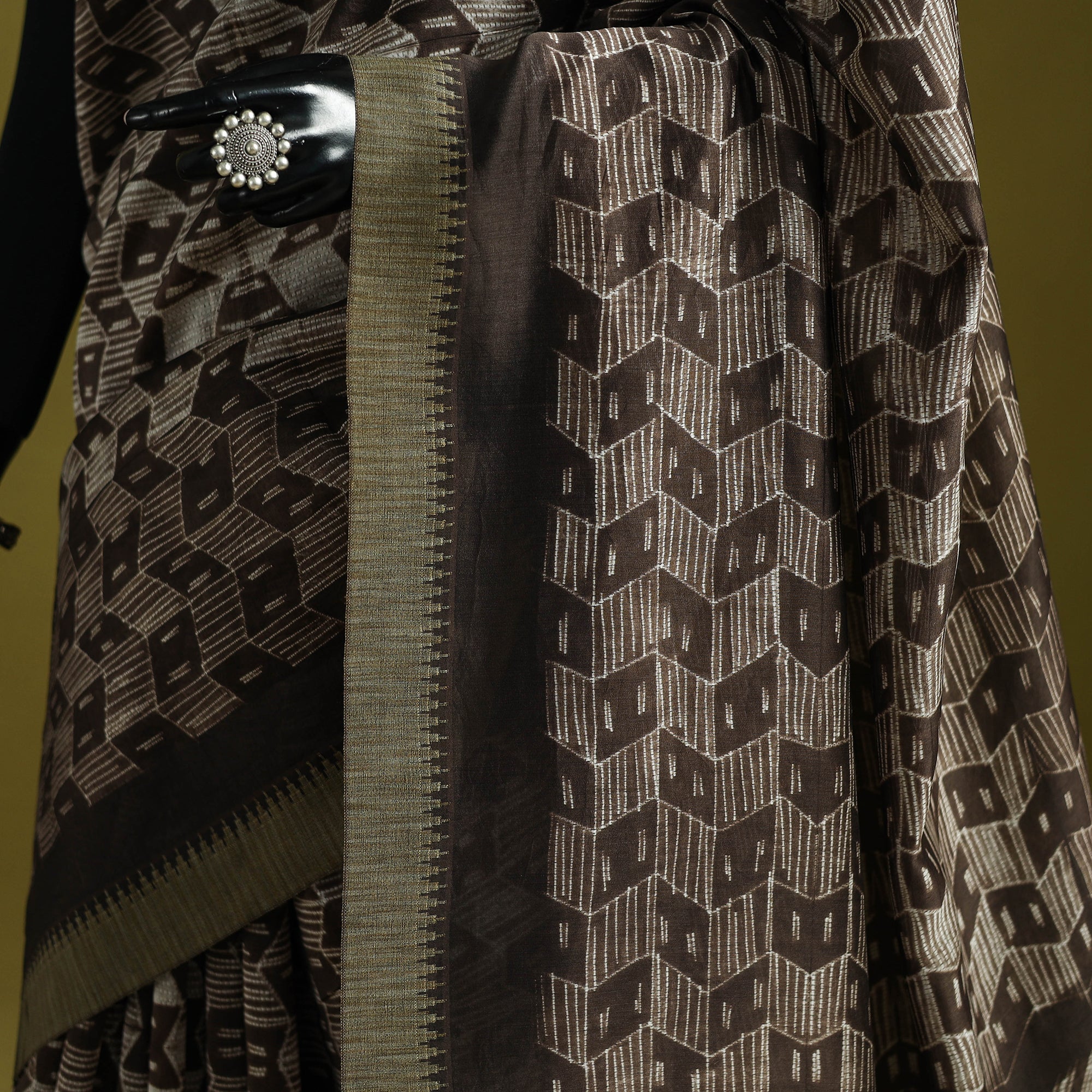 Chanderi Silk Nui Shibori Tie-Dye Saree with Ghicha Border 17