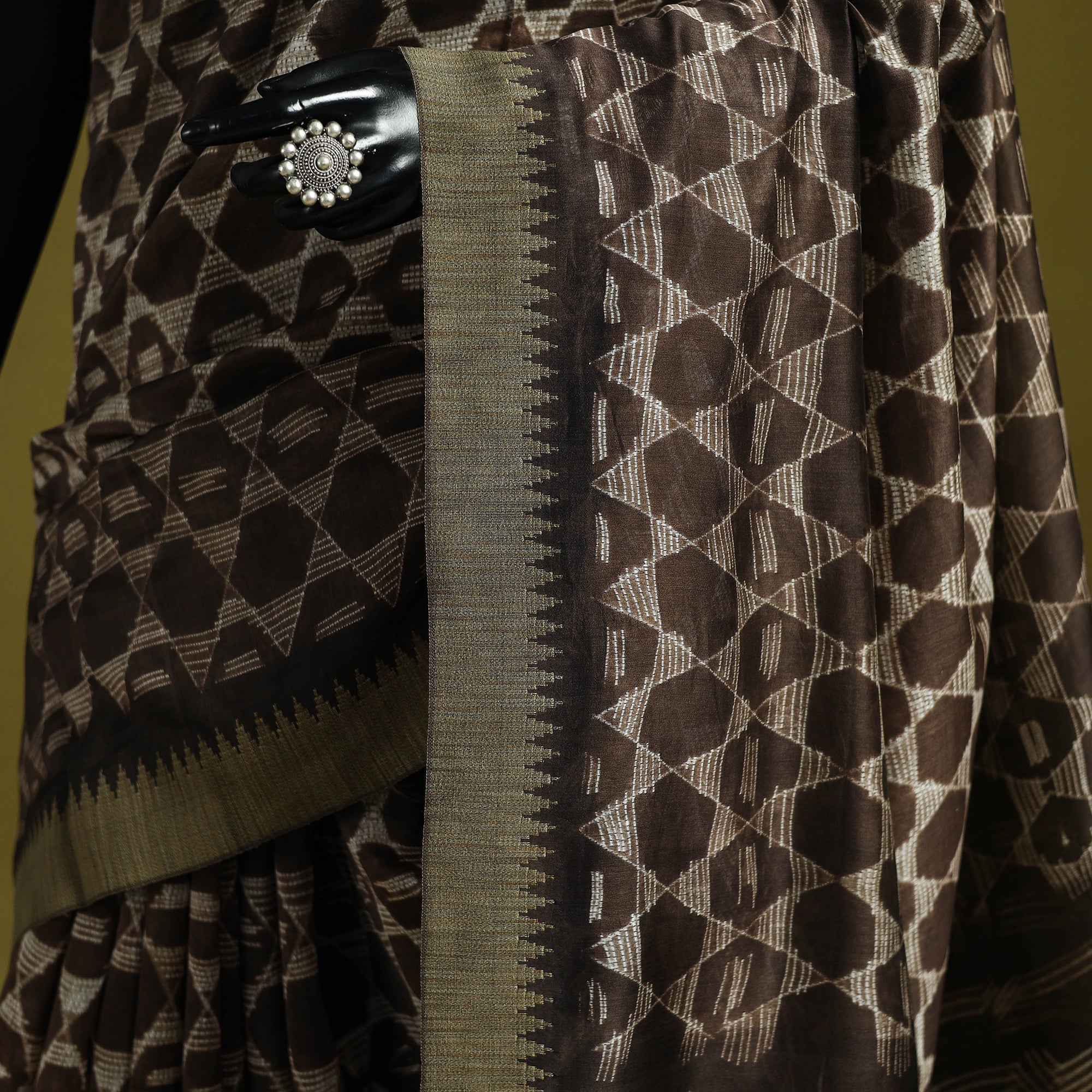 Chanderi Silk Nui Shibori Tie-Dye Saree with Ghicha Border 19
