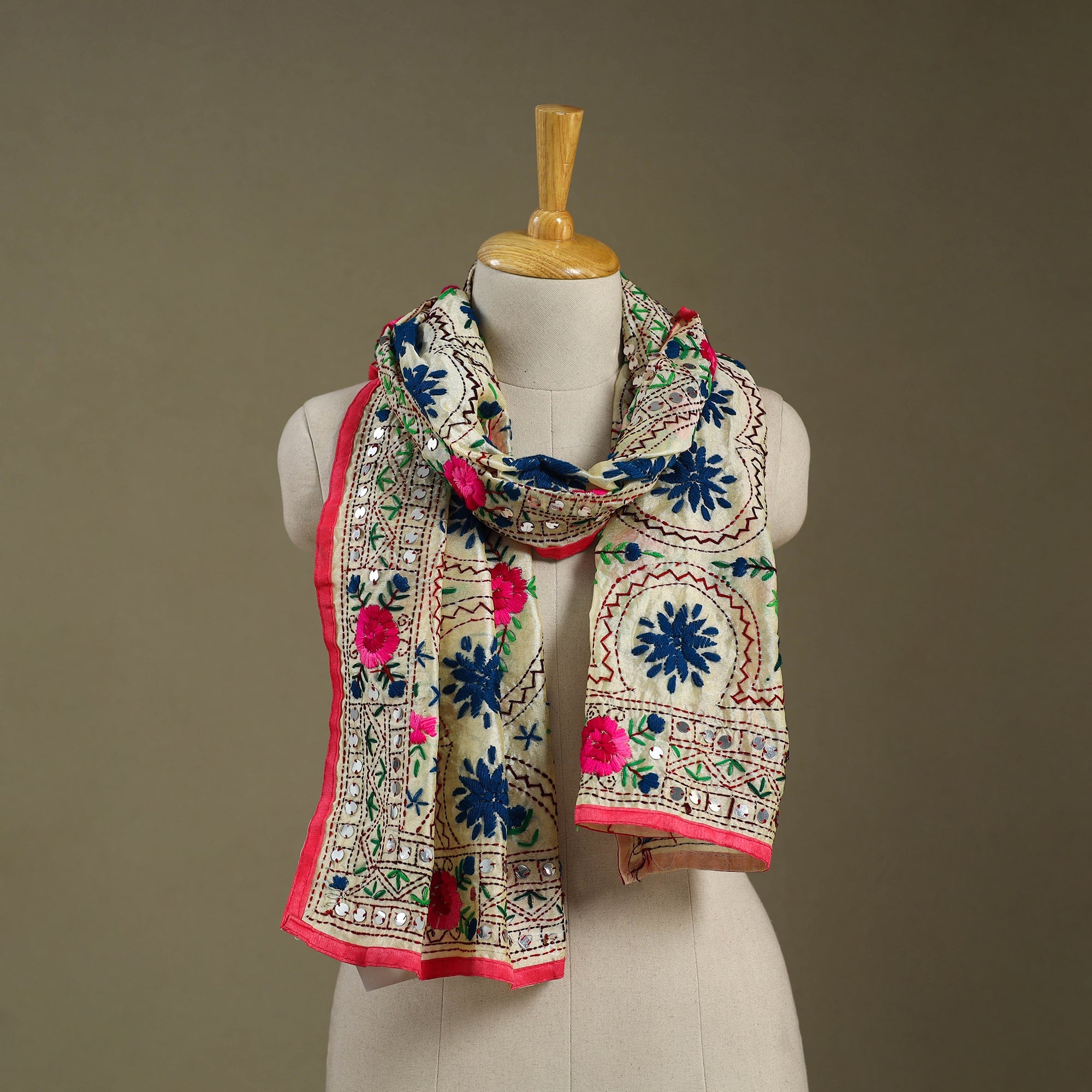 Pink - Chanderi Silk Hand Embroidered Stole 08