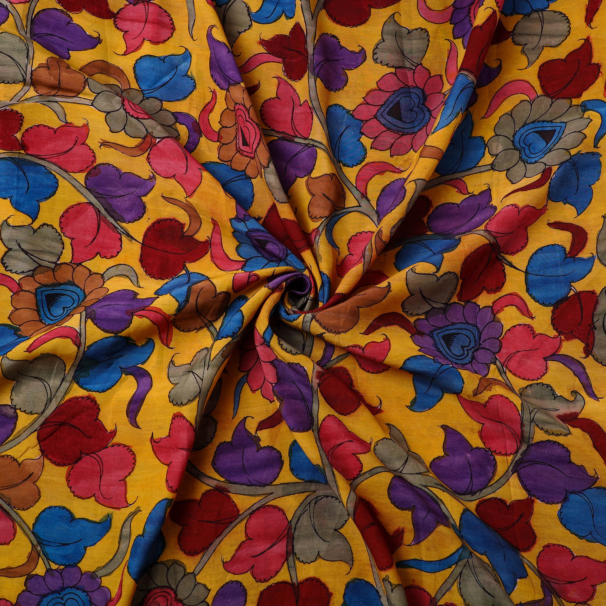 • Yellow Chanderi Silk Srikalahasti Pen Kalamkari Fabric