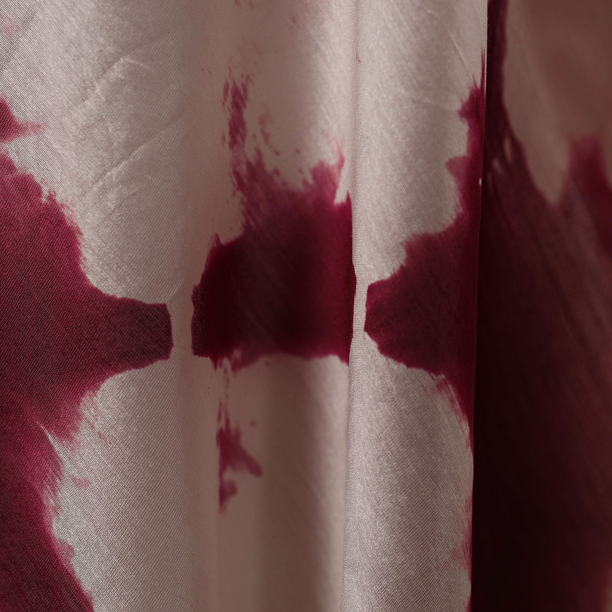 This maroon shibori fabric is hand-dyed using traditional tie-dye techniques, where the material is carefully bound with threads to form intricate patterns. Made from fine chanderi silk cotton, it features a subtle sheen and a lightweight texture, making it perfect for creating elegant kurtas, graceful dresses, dupattas, or sophisticated home decor accents.