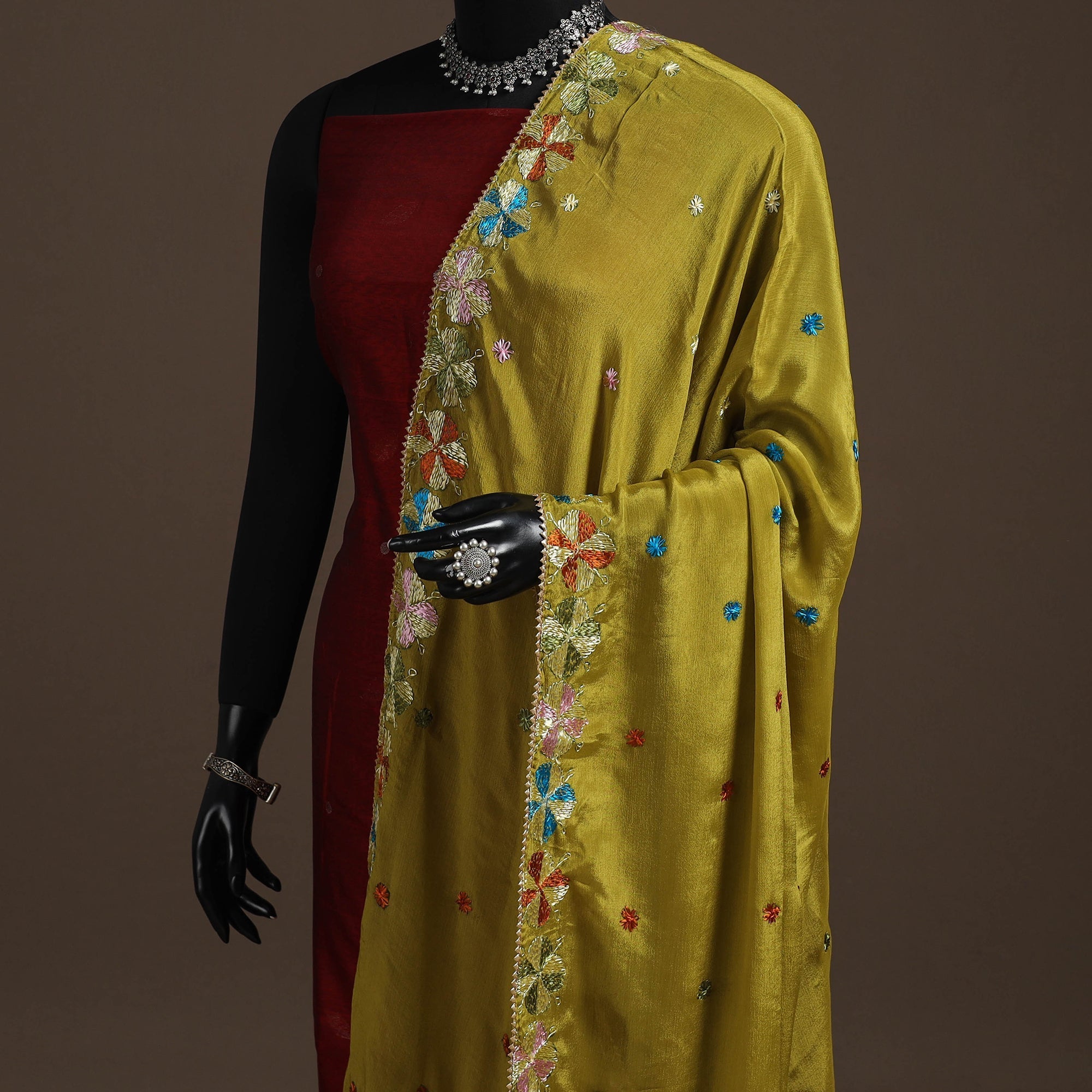 Yellow - Ranihati Chapa Work Chanderi Silk Hand Embroidery Dupatta 135