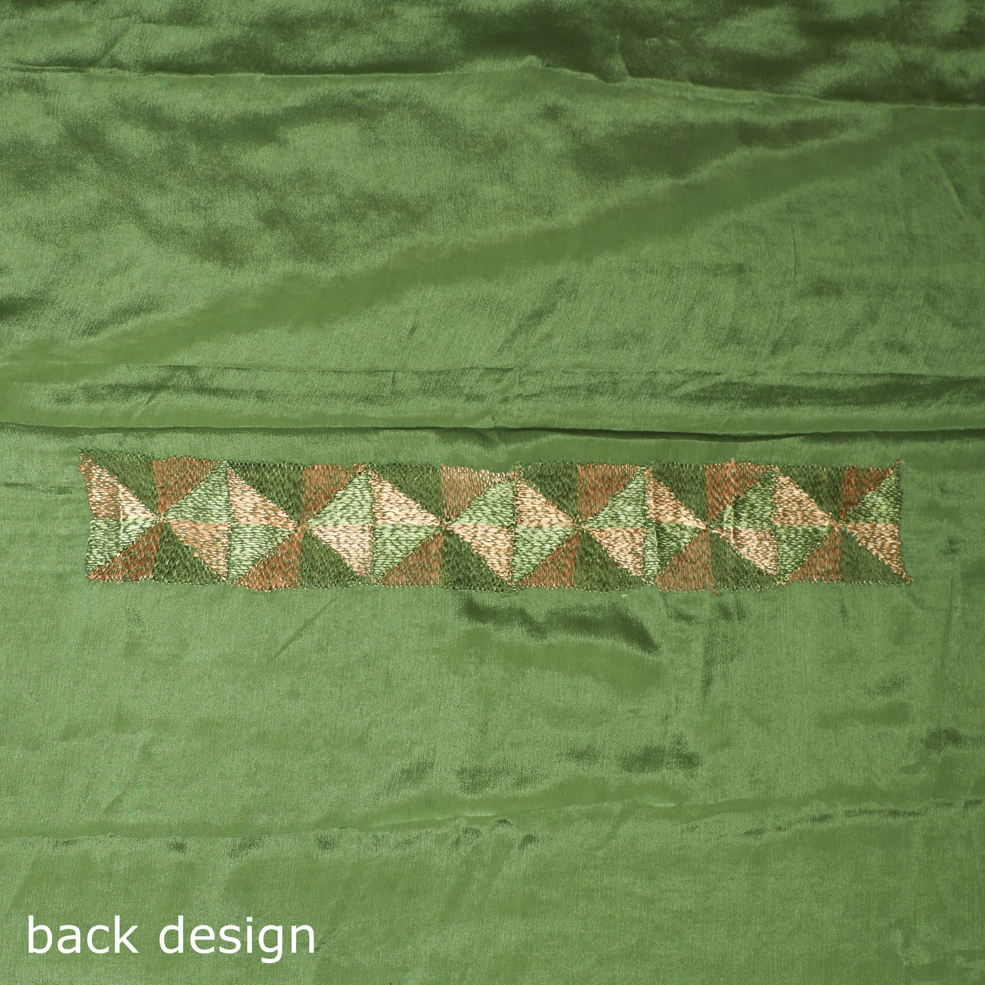Green - Chinon Silk Hand Embroidery Phulkari Saree 08