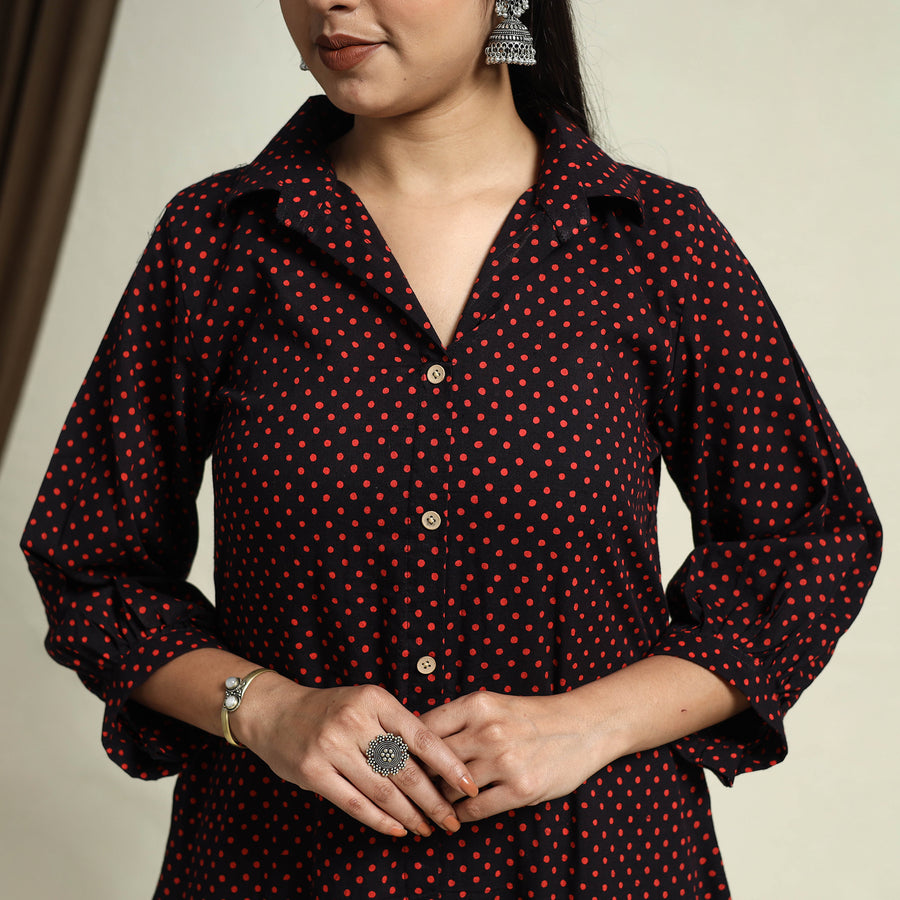 Step into the elegance with this cotton black kurta adorned in timeless batik prints. The resist dye method lends each piece its own character, while the crisp collar and button-down front add a touch of structure. Designed in breathable cotton with a handy pocket on one side, this kurta blends comfort and charm perfect for workdays, brunches, or laid-back evenings.