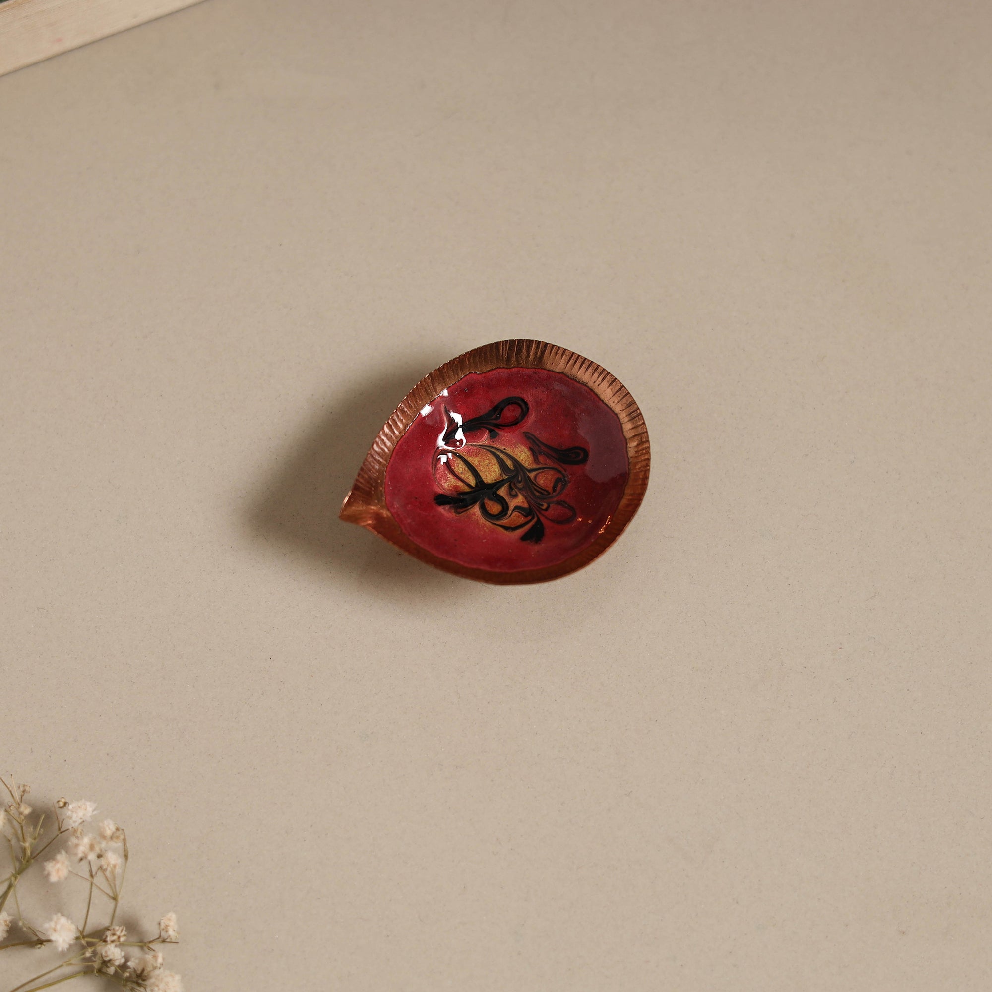 Elevate your ambiance with our exquisite hand-hammered copper diya from Alibag, Maharashtra. Adorned with intricate enamel work, this piece adds a touch of artistry to any setting. Light up your surroundings with this diya, embracing the cultural richness and craftsmanship, perfect for rituals, festivities, and cherished moments.