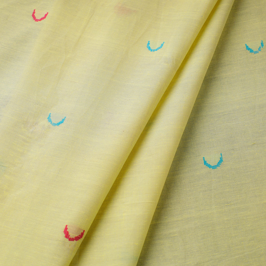 Fine quality godavari jamdani buti pure handloom cotton fabric from Andhra Pradesh. Azo free dyes have been used to make this fabric. The base fabric for Jamdani is unbleached cotton yarn and the design is woven using bleached cotton yarns so that a light-and-dark effect is created. The process is extremely time consuming as it involves a tedious form of hand looming. The making of Jamdani involves the supplementary weft technique along with the standard weft technique. With the latter, the base sheer material is made on which thicker threads on used to create designs.