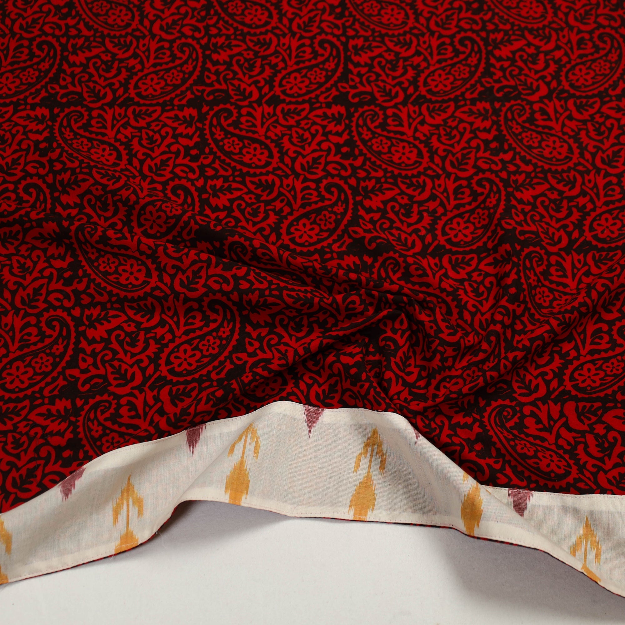 Cotton bagh print red blouse piece, using the bagh block printing technique from Madhya Pradesh. Made with breathable cotton and natural dyes. The intricate patterns and eco-friendly fabric make it an elegant and sustainable choice for sarees and ethnic ensembles.