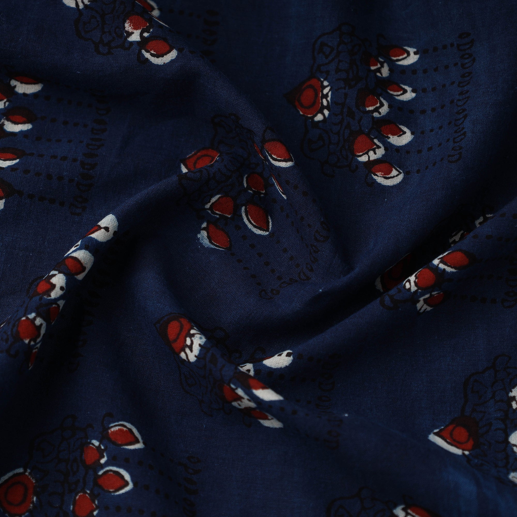Experience the charm of block-printed cotton blue bagru fabric, made using natural dyes and the traditional mud-resist technique. Hand-printed with carved wooden blocks in Rajasthan, this fabric is ideal for clothing, décor, and DIY projects.