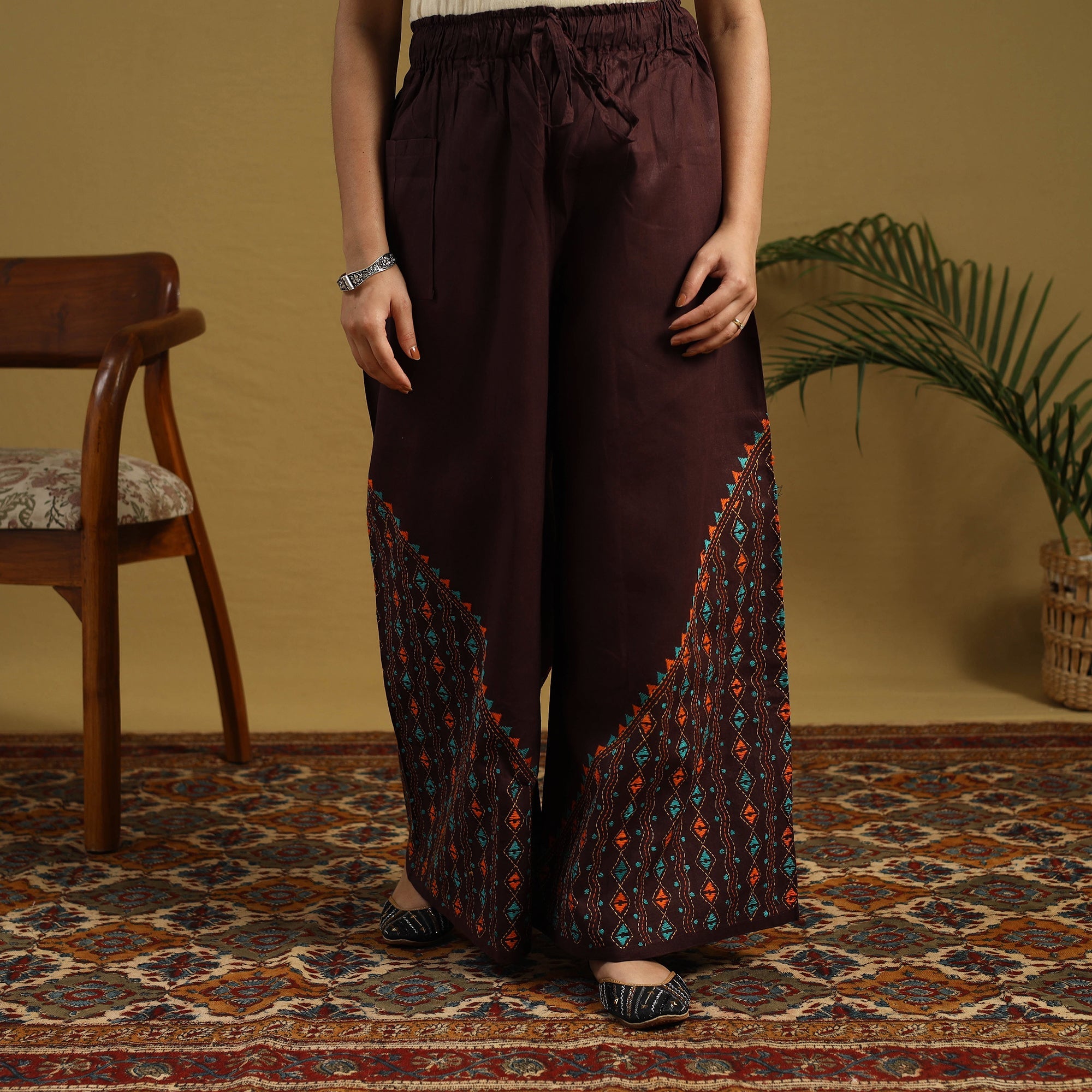 Brown - Cotton Bengal Kantha Hand Embroidery Palazzo 110