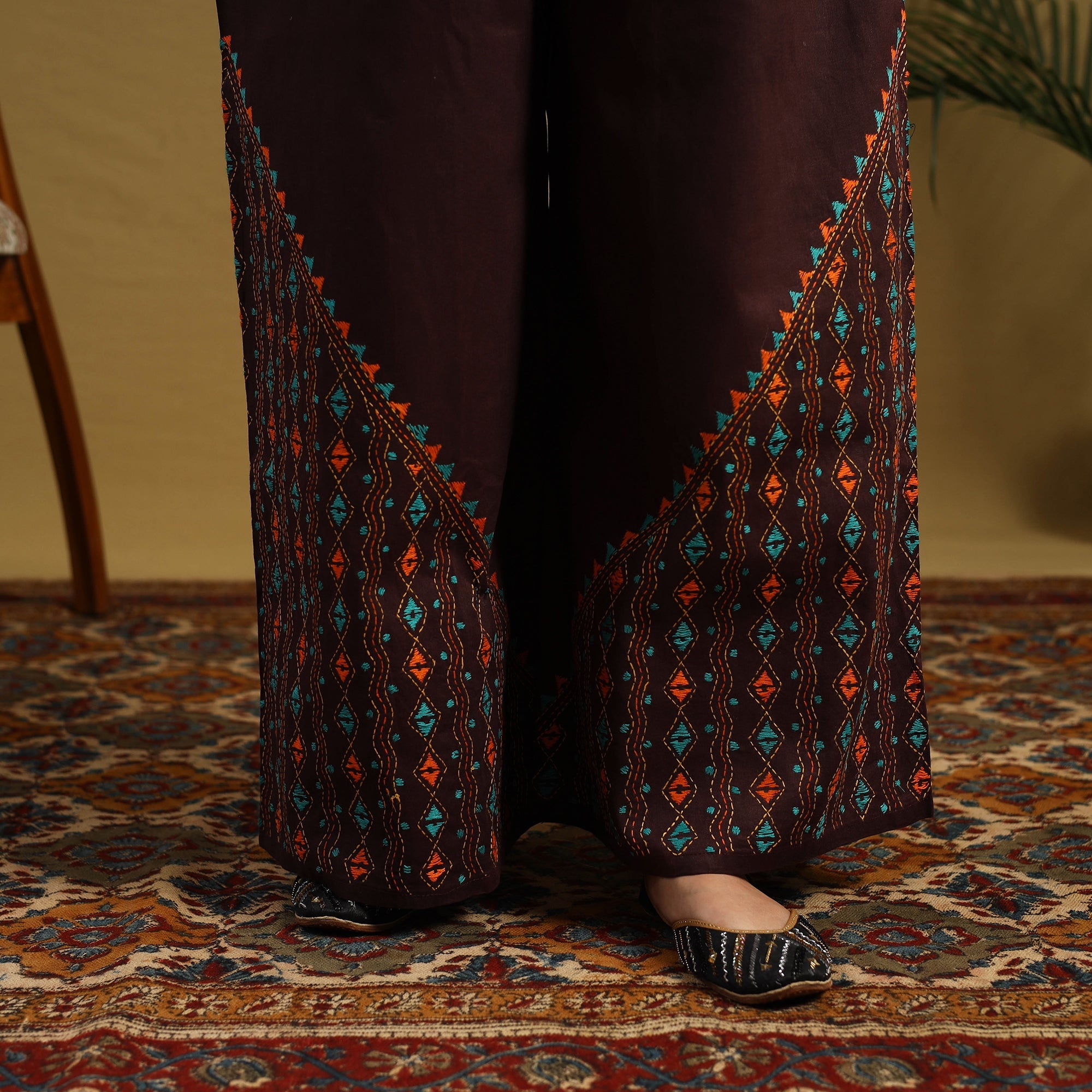 • Brown - cotton bengal kantha hand embroidery palazzo 110