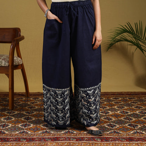 Blue - Cotton Bengal Kantha Hand Embroidery Palazzo 19
