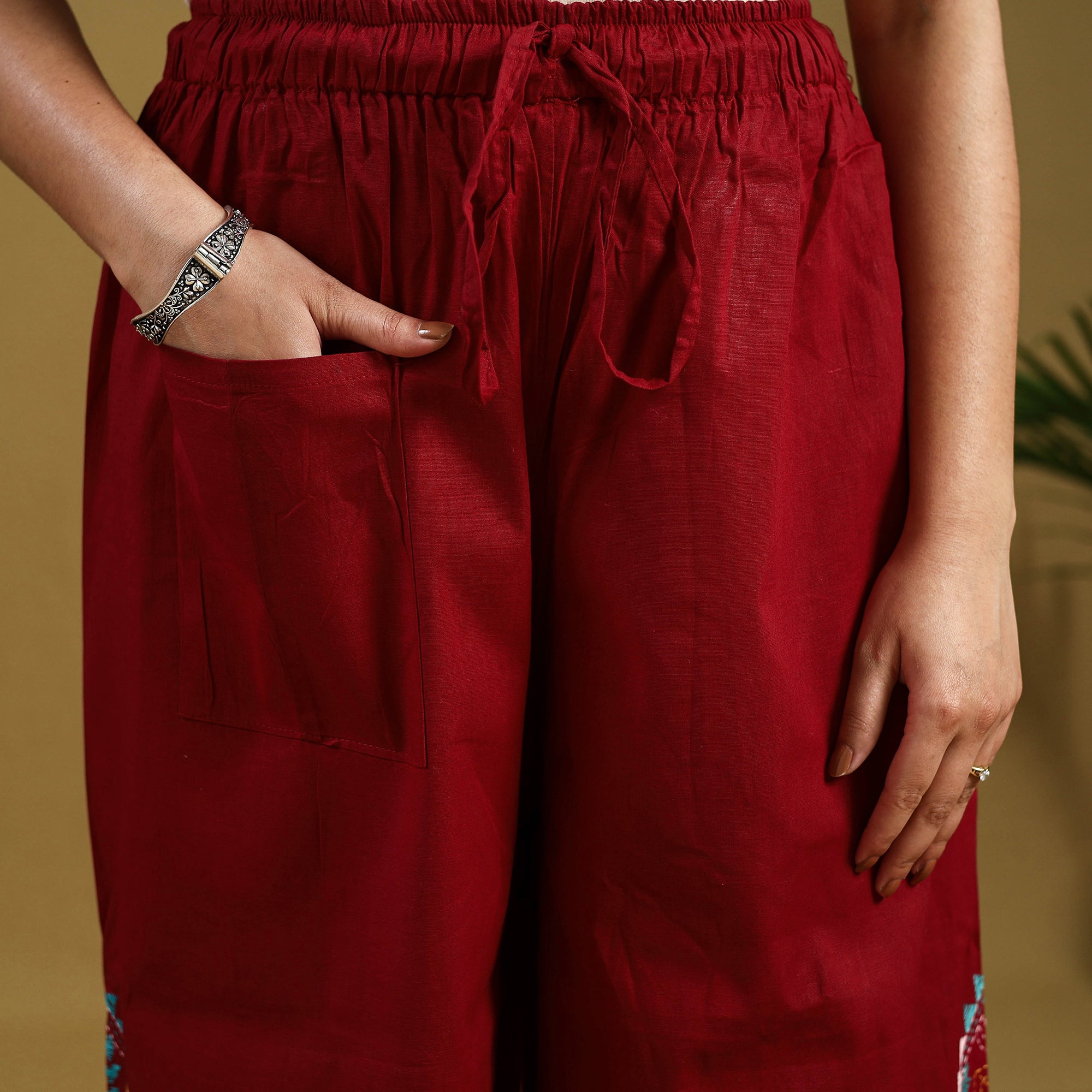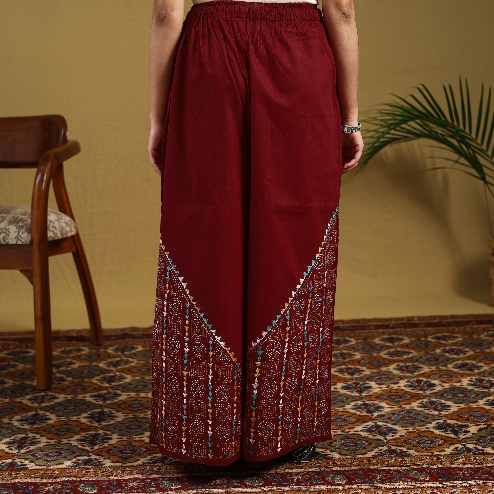 Red - Cotton Bengal Kantha Hand Embroidery Palazzo 41