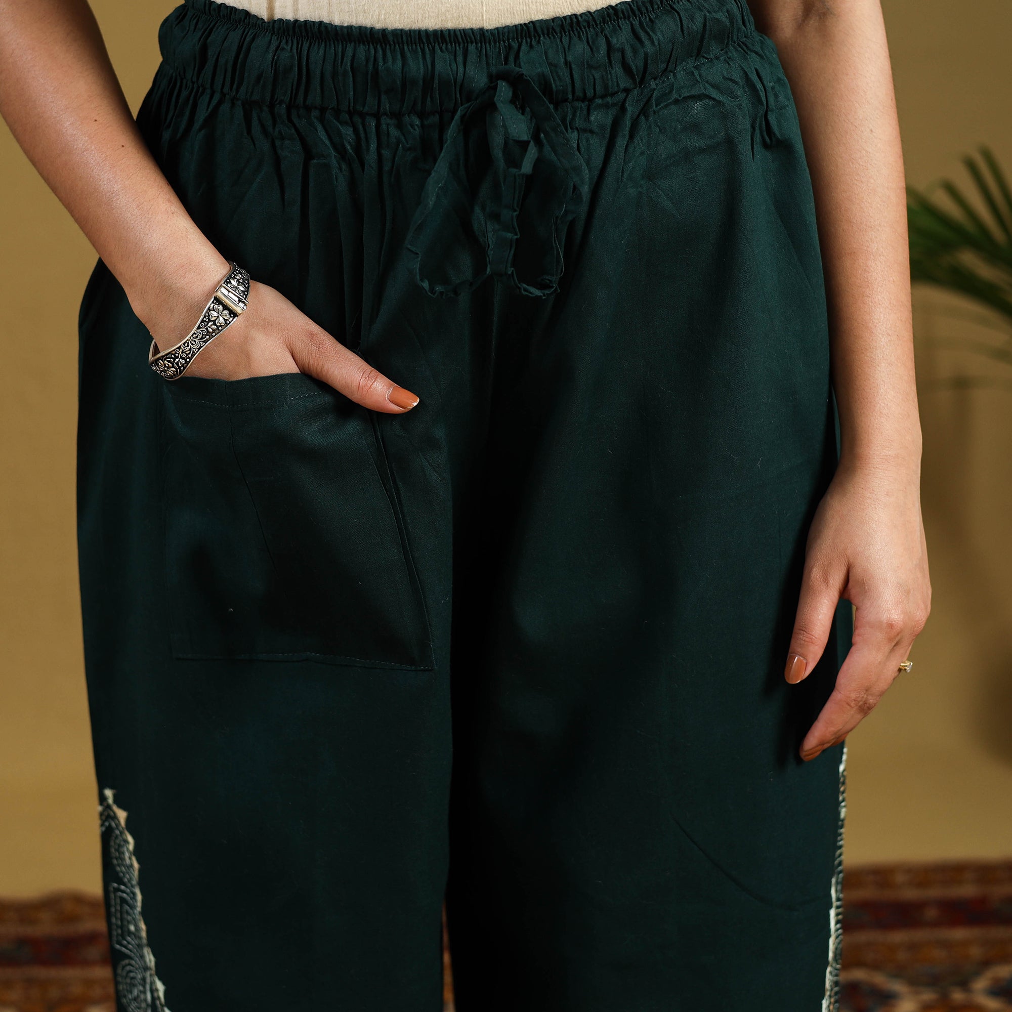 •  Green Cotton Bengal Kantha Hand Embroidery Palazzo