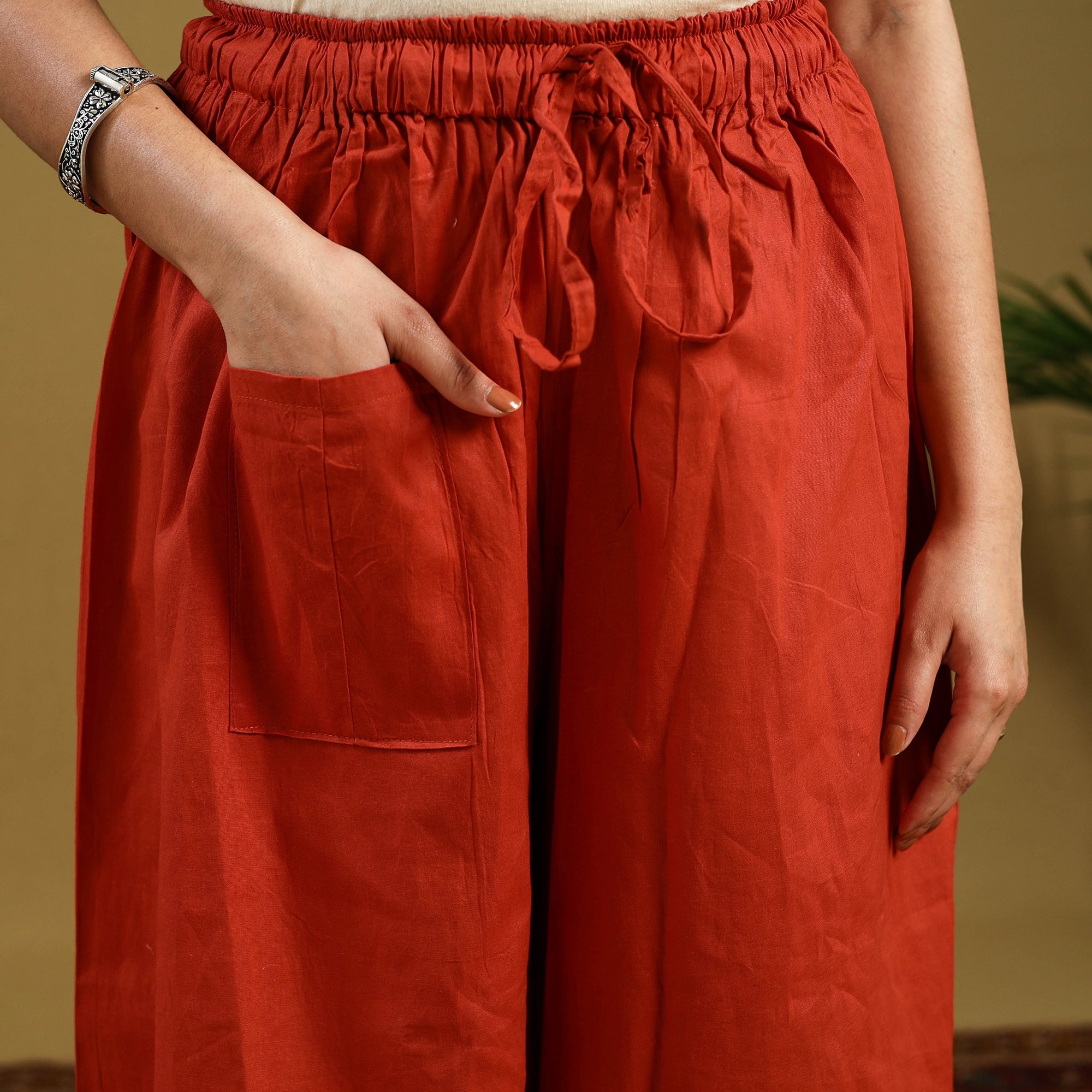 Infuse tradition into your wardrobe with this orange cotton palazzo featuring kantha embroidery from Bengal. The delicate hand-stitching on lightweight cotton creates a beautiful fusion of comfort and artistry. Its roomy wide-leg cut ensures day-long ease, ideal for relaxed outings, friendly gatherings, or weekend vibes.