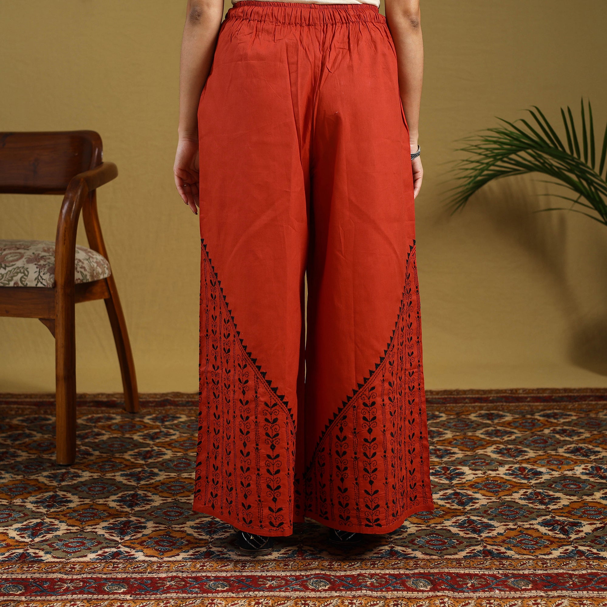 Orange - Cotton Bengal Kantha Hand Embroidery Palazzo 59