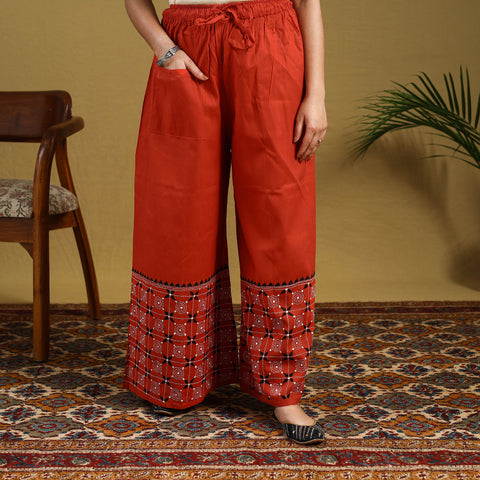 Orange - Cotton Bengal Kantha Hand Embroidery Palazzo 60