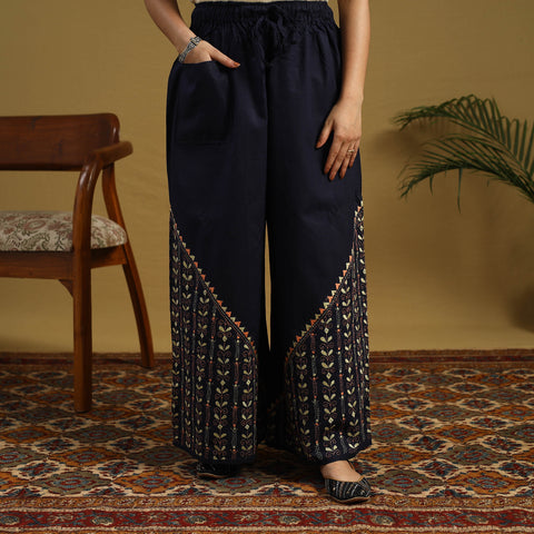 Blue - Cotton Bengal Kantha Hand Embroidery Palazzo 77