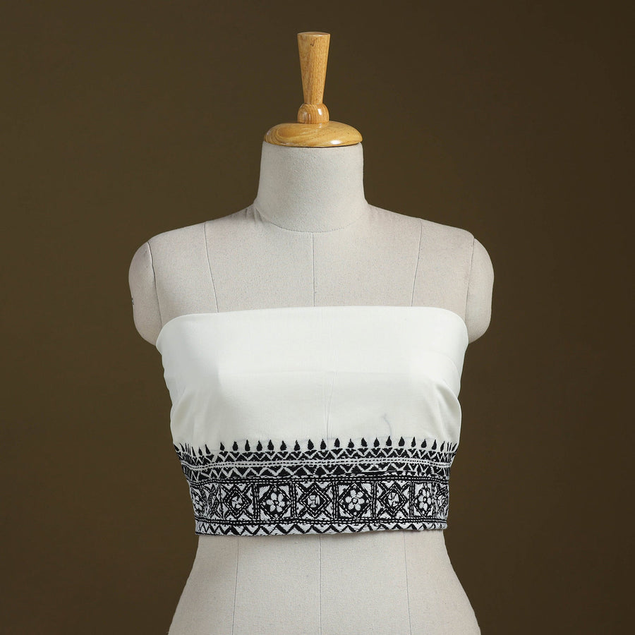 This white cotton bengal kantha stitch blouse piece showcases intricate hand embroidery inspired by the traditional kantha art of West Bengal. Each motif is carefully crafted by skilled artisans, turning it into a wearable piece of heritage. Style it your way with your favourite sarees to add a refined, handcrafted touch, perfect for both festive occasions and everyday elegance.