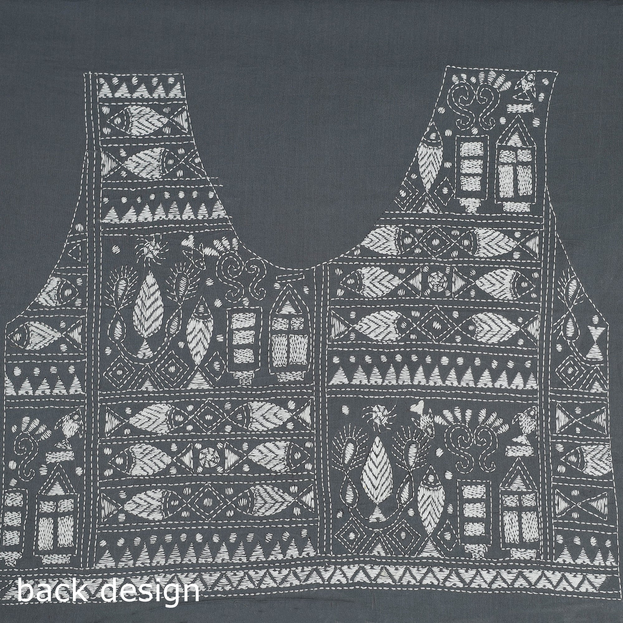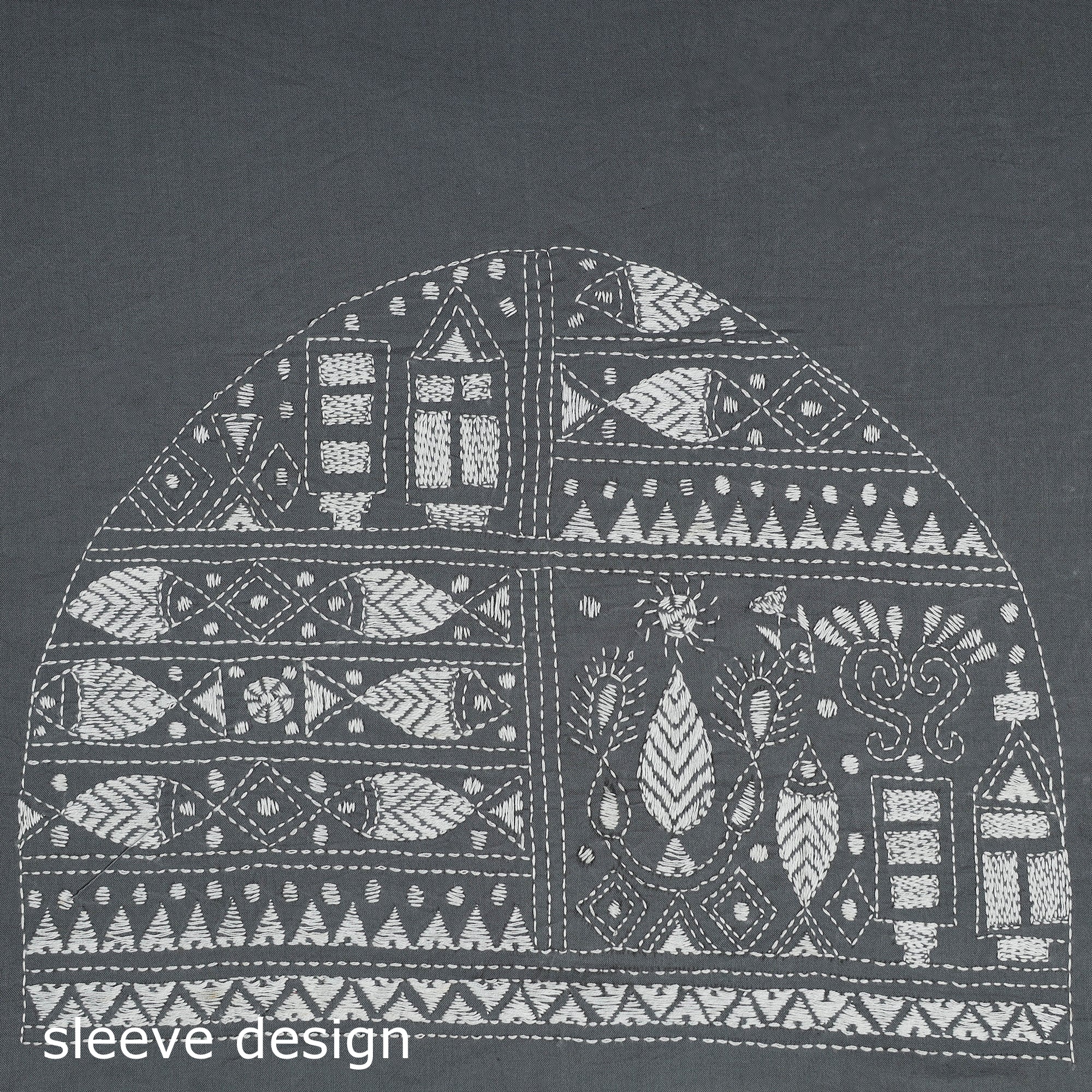 This grey cotton bengal kantha stitch blouse piece showcases intricate hand embroidery inspired by the traditional kantha art of West Bengal. Each motif is carefully crafted by skilled artisans, turning it into a wearable piece of heritage. Style it your way with your favourite sarees to add a refined, handcrafted touch, perfect for both festive occasions and everyday elegance.